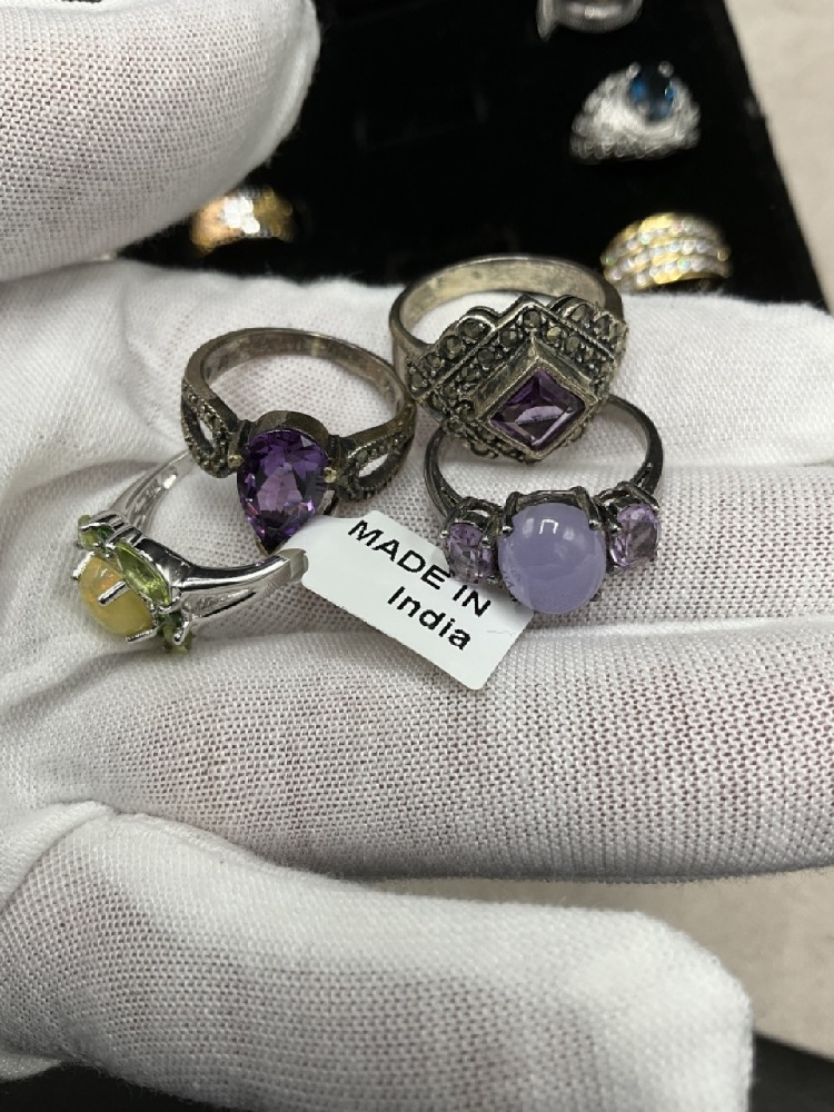 Assorted gemstones, marcasite etc. As seen in photograph preview. Most Size 7-8.