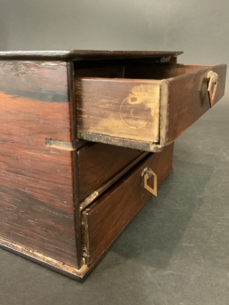 Three (3) Drawer Antique Rosewood Box with Copper Trangular Pulls