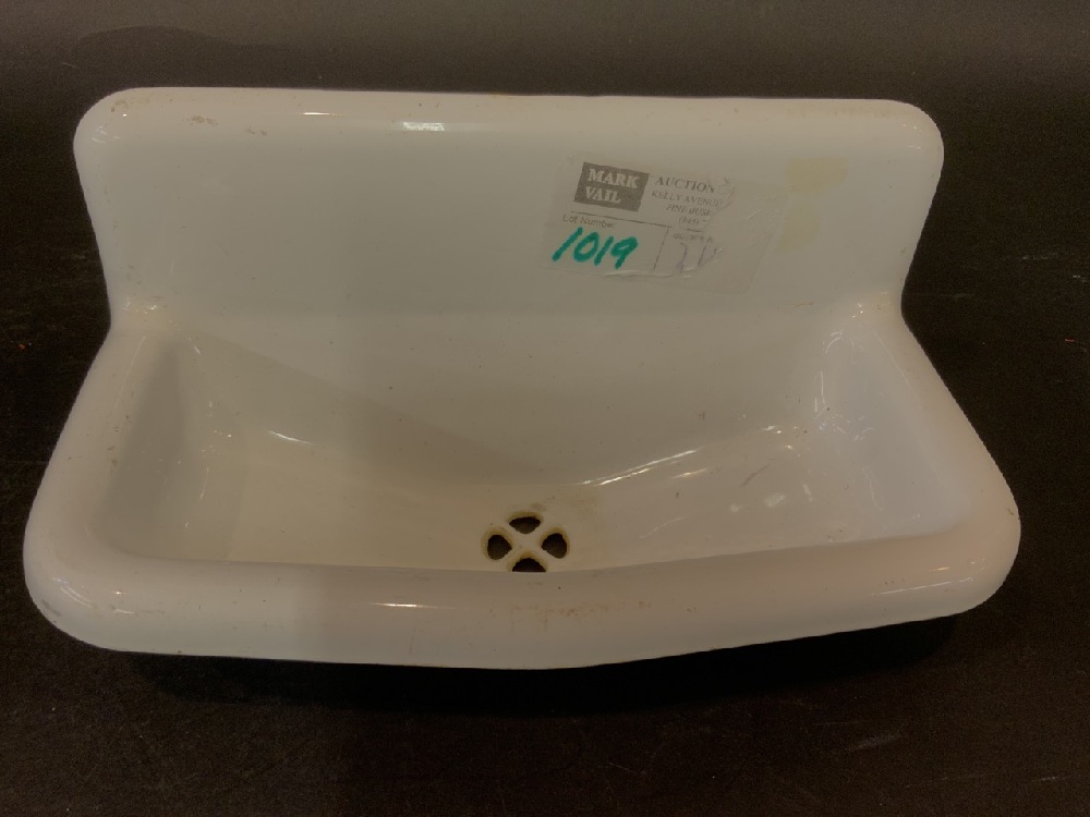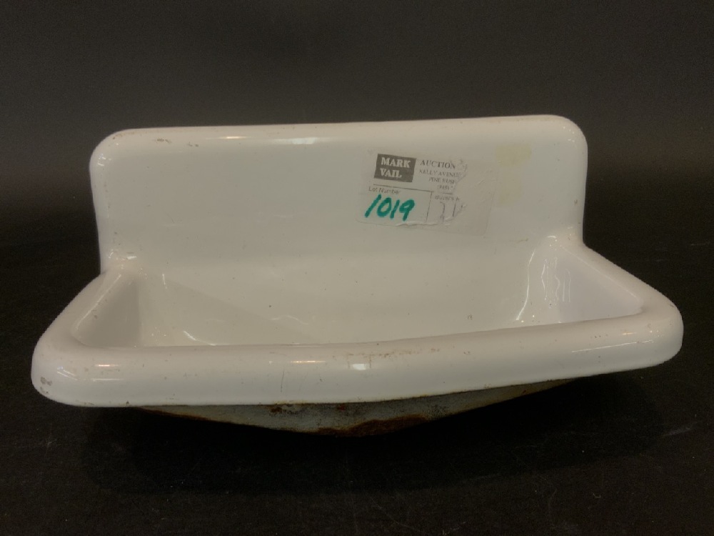 A tiny vintage Miniature enameled porcelain sink.
