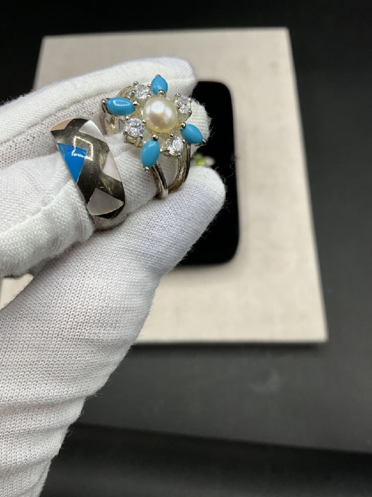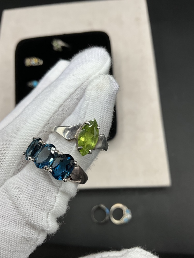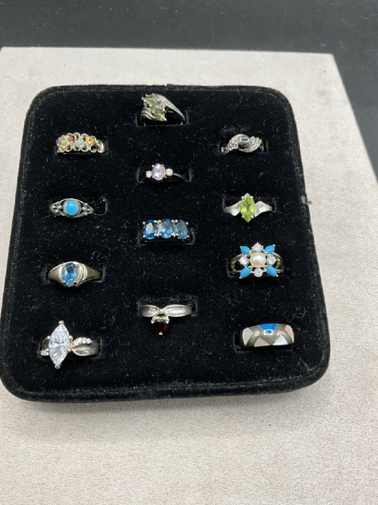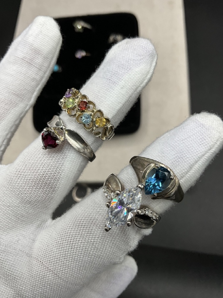 Assorted gemstones, marcasite etc. As seen in photograph preview. Most Size 7-8.