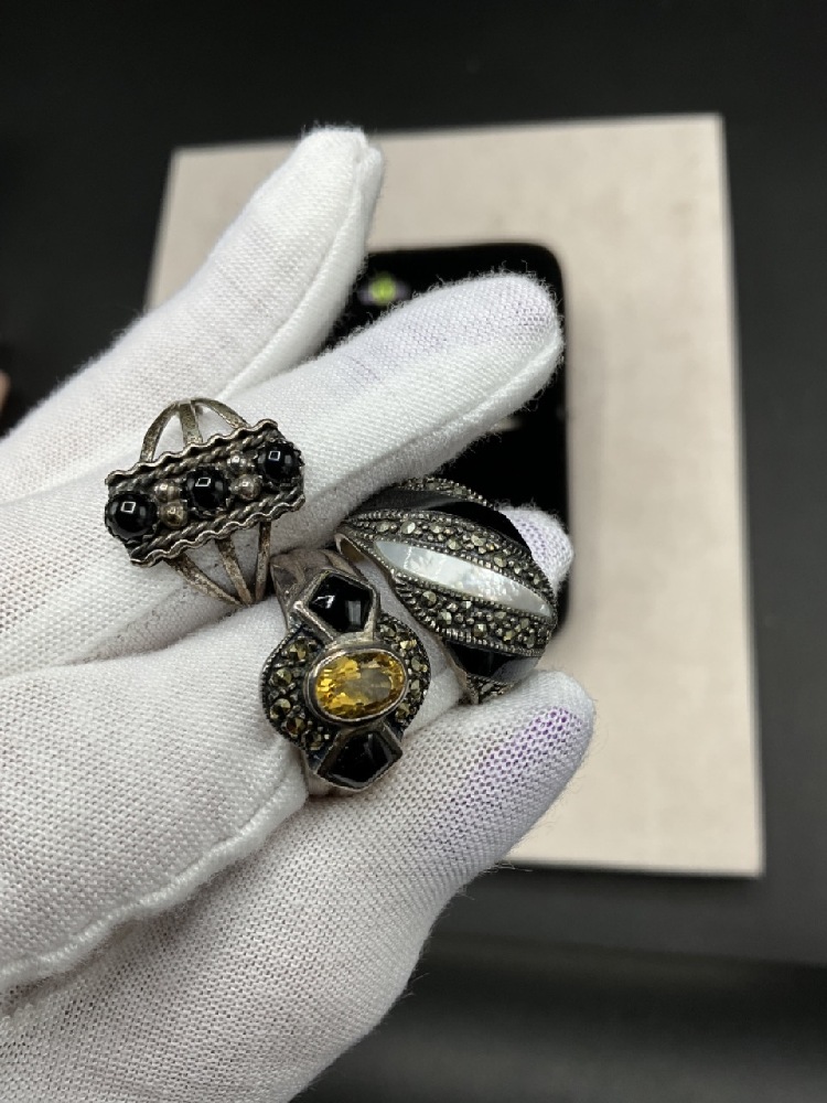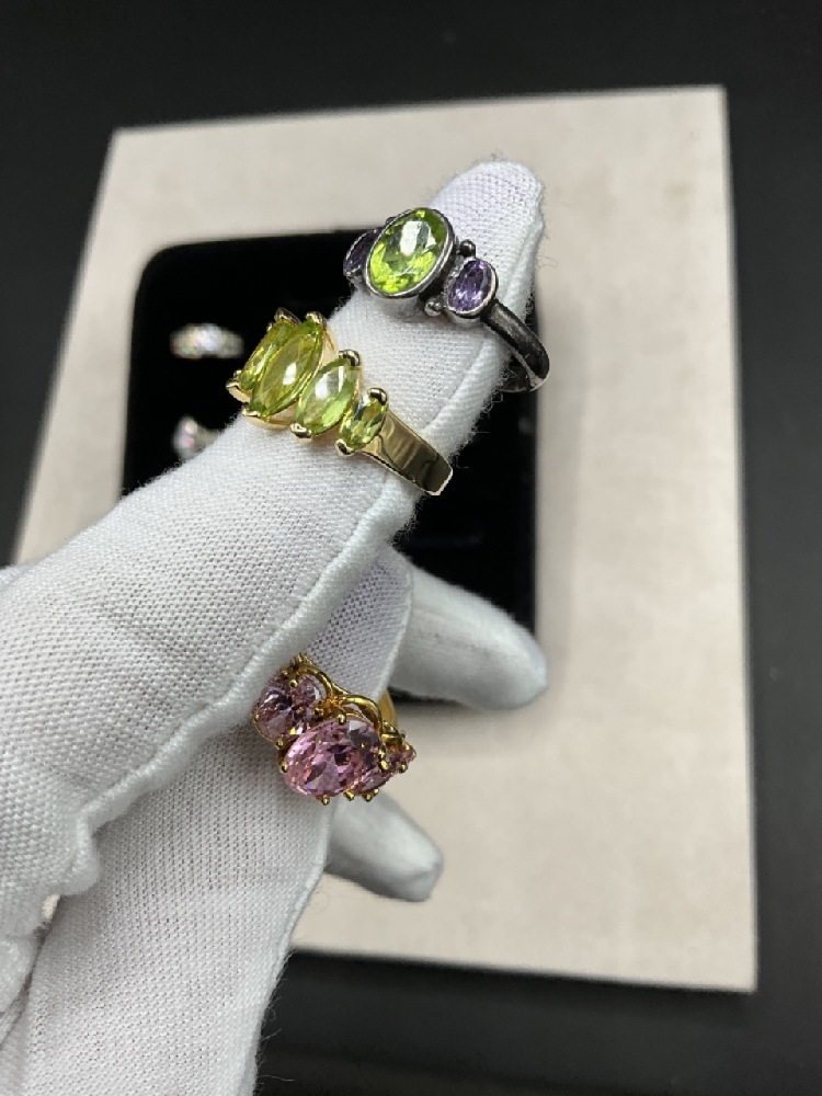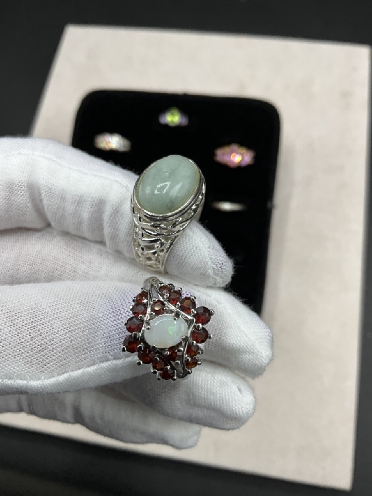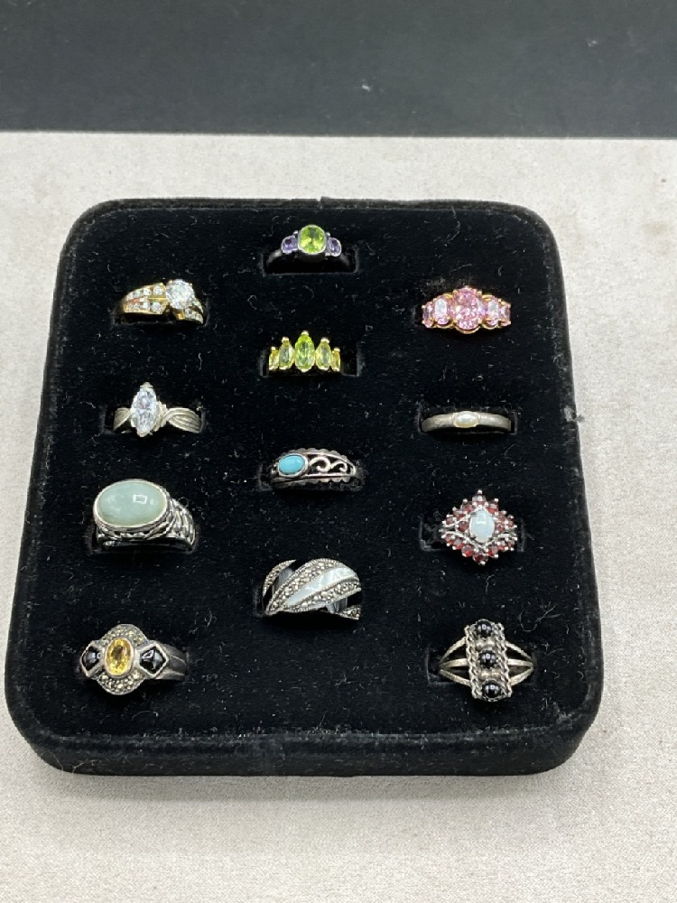 Assorted gemstones, marcasite etc. As seen in photograph preview. Most Size 7-8.