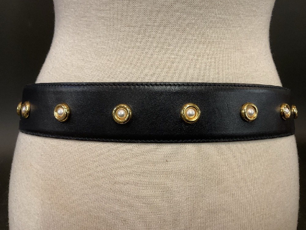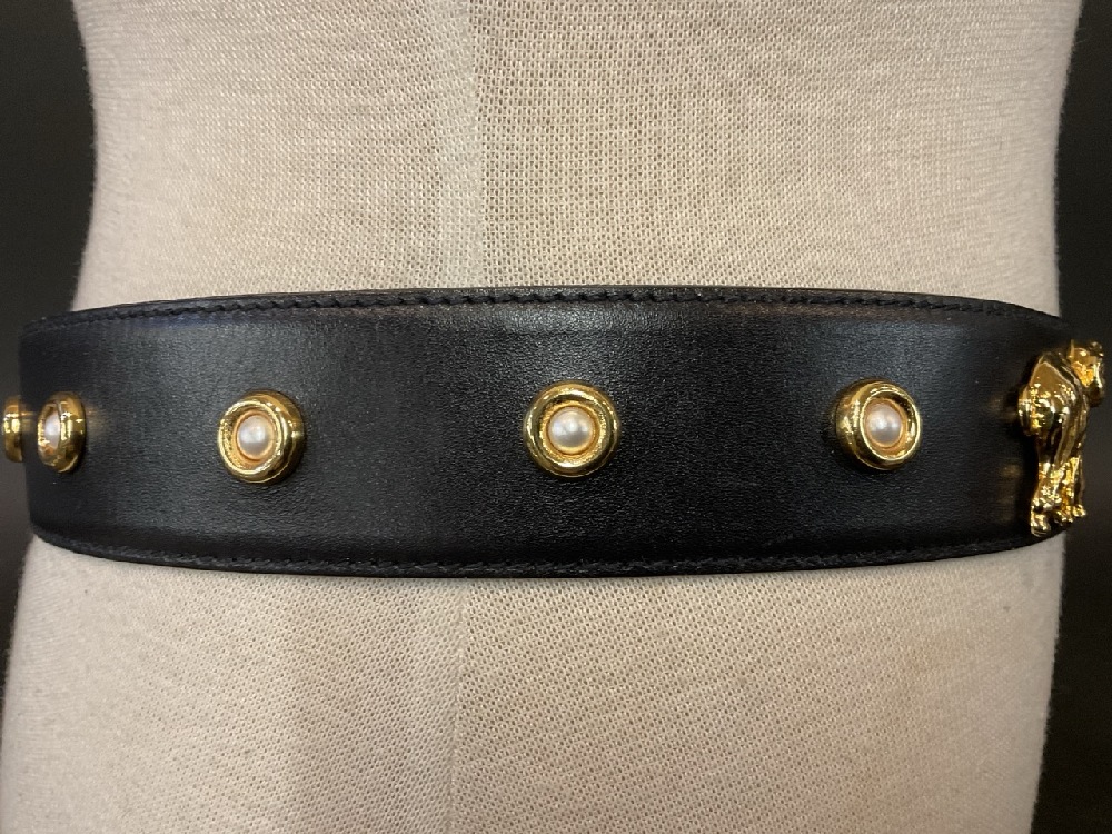 Escada Pearl & Gold Elephant Leather Belt