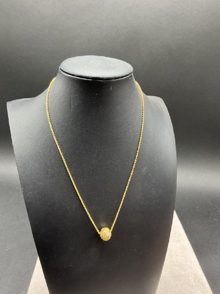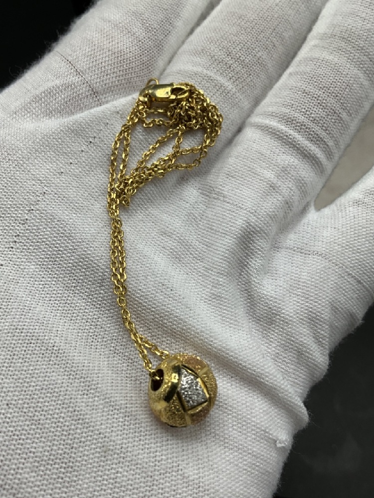 14k Yellow Gold Necklace with Tri-Gold Ball Pendant.