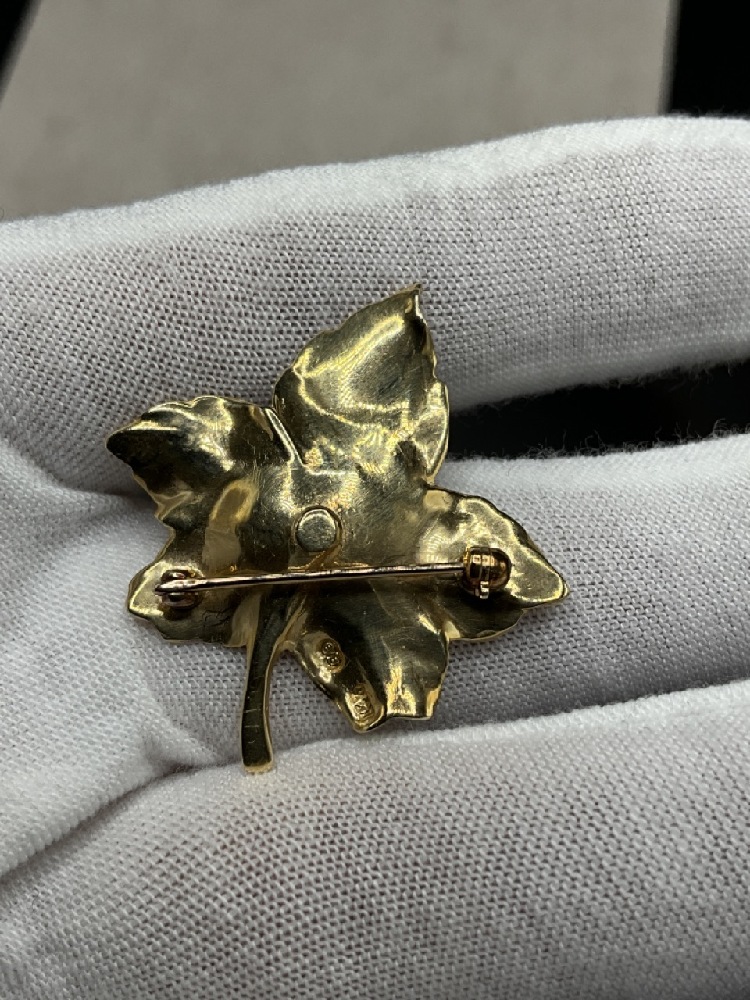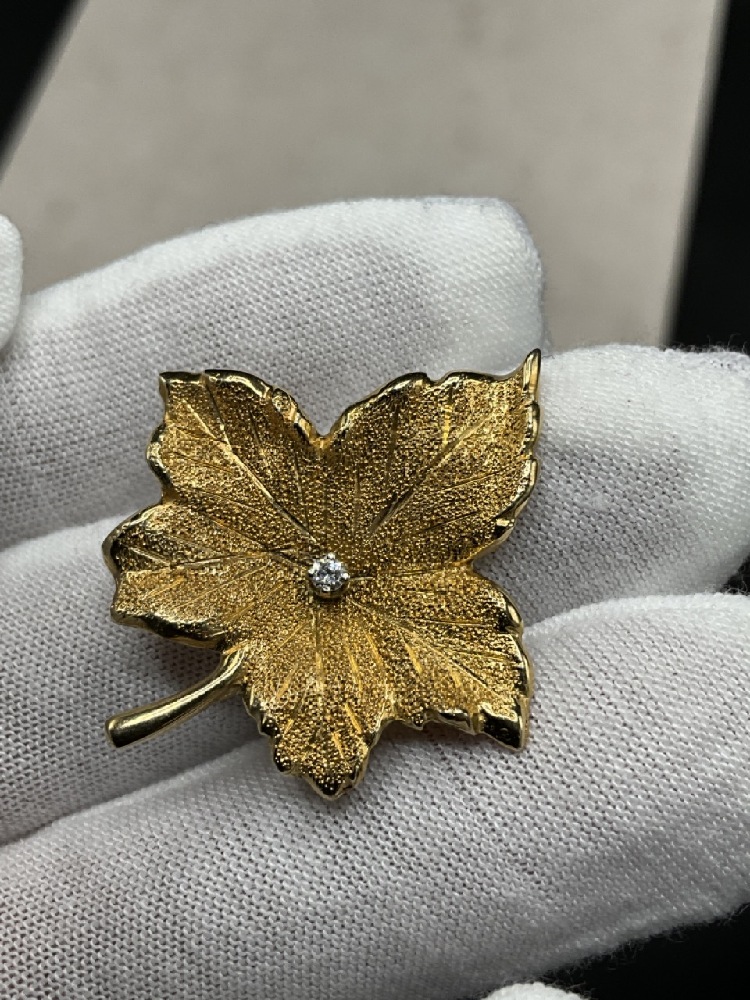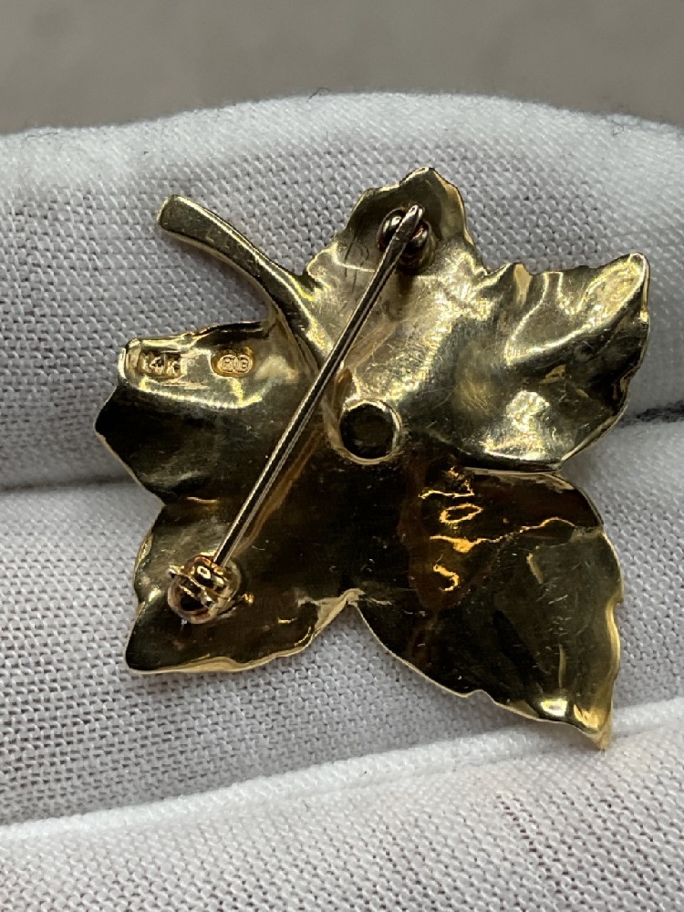 14K Gold Leaf Pin with Diamond.