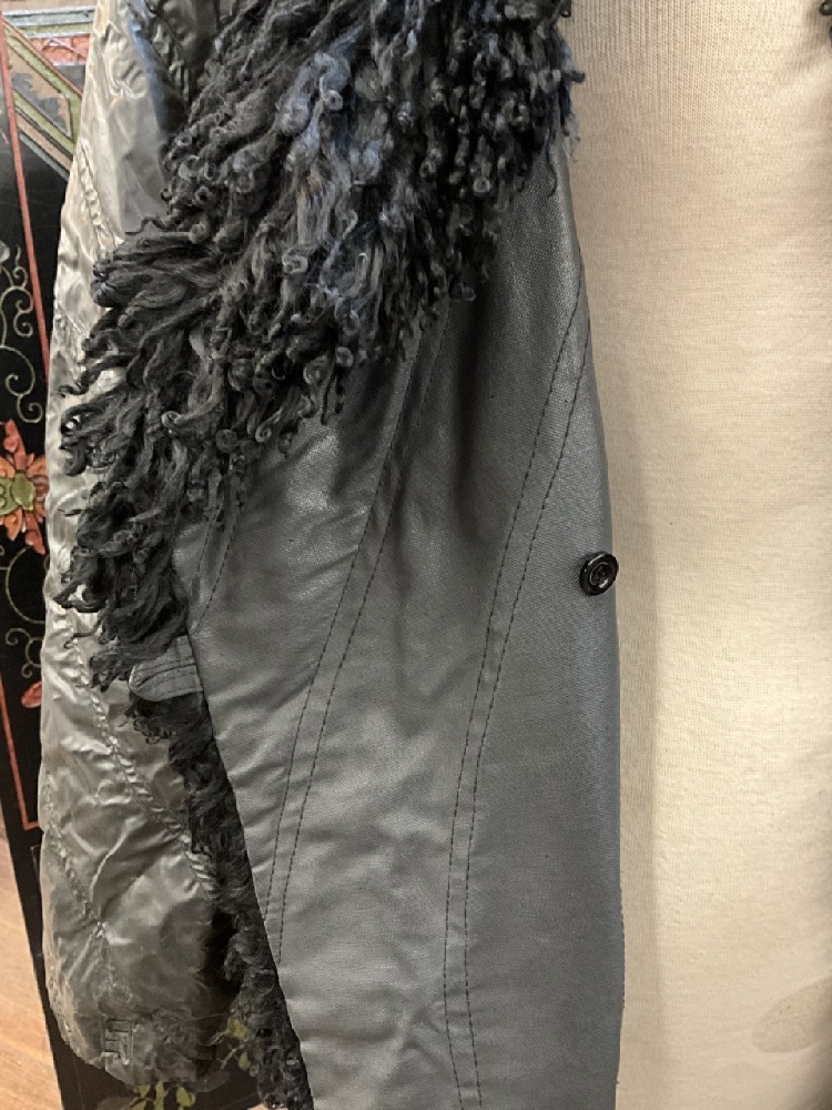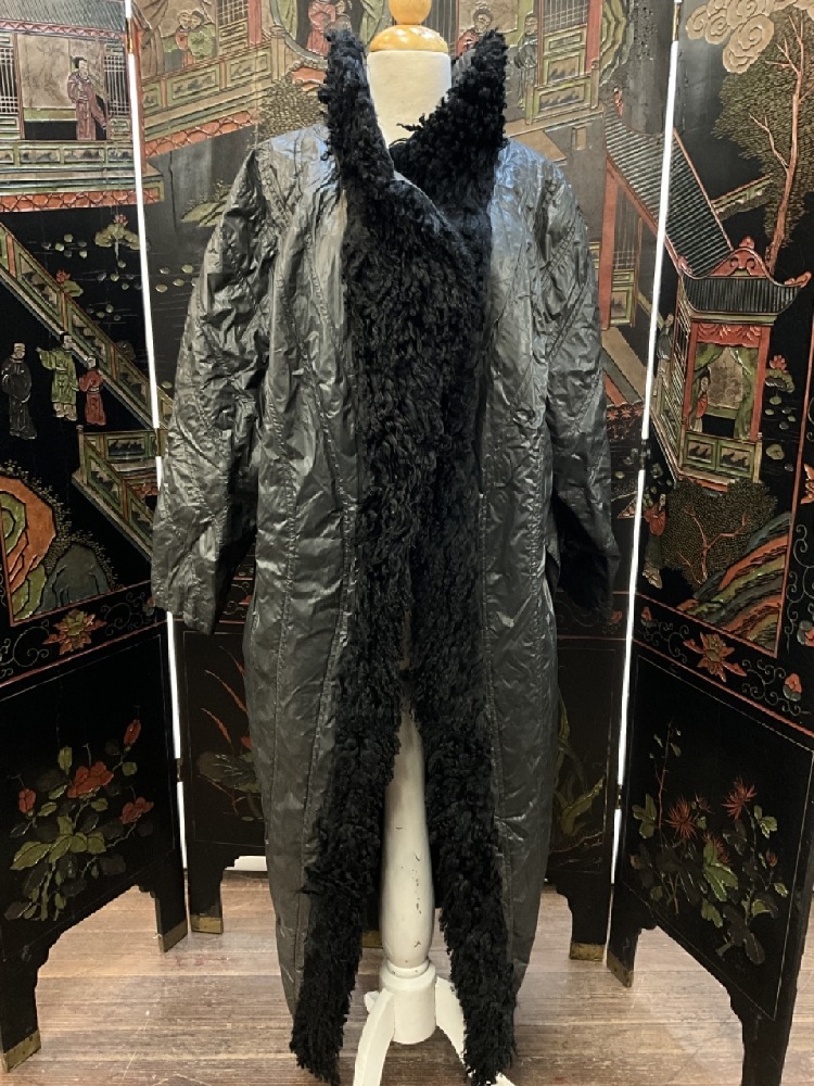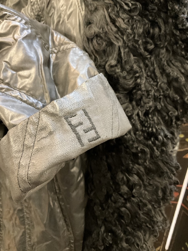 Fendi Boutique Long Trench Coat with curly lamb trim.