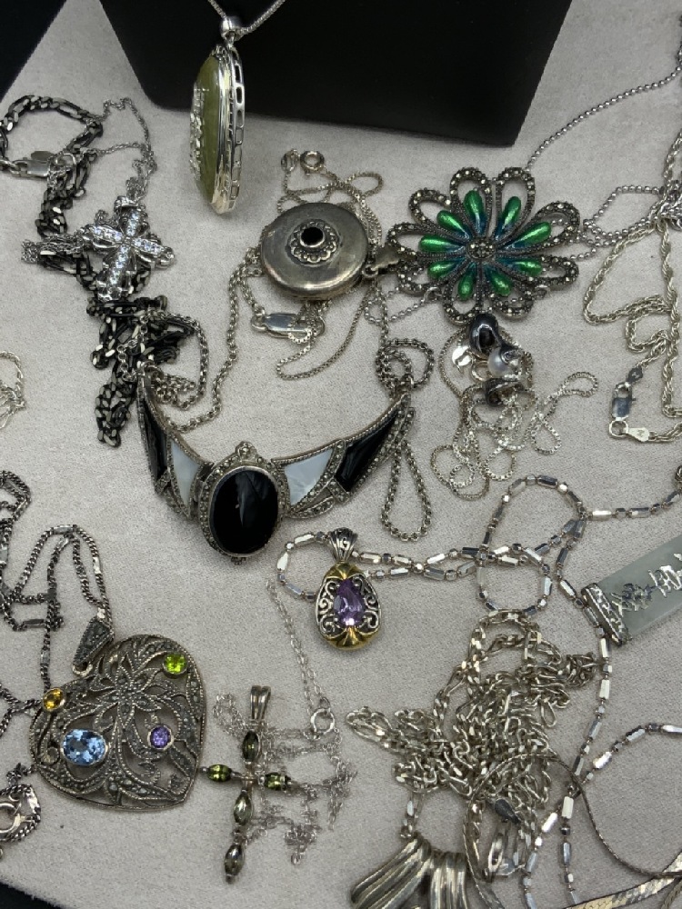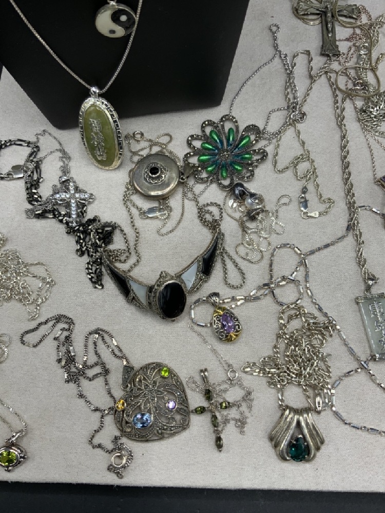 Twenty (20) Piece Estate Compiled Sterling Silver Jewelry Group.