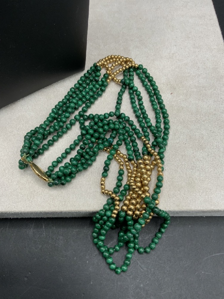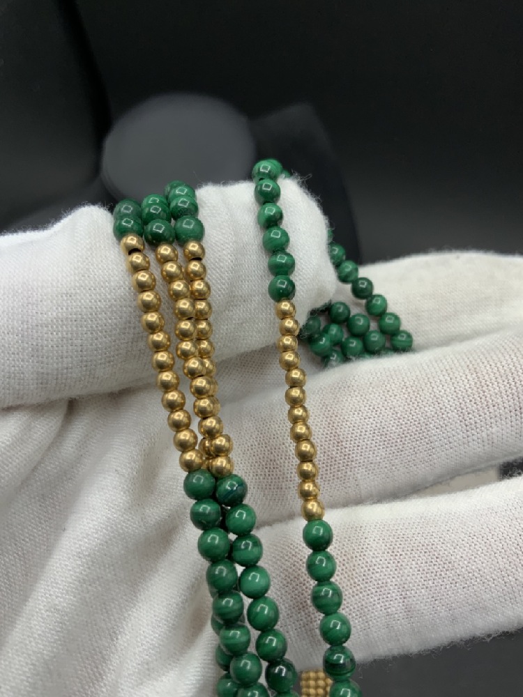 Five (5) Strand 14K Gold and Malachite Bead Necklace.