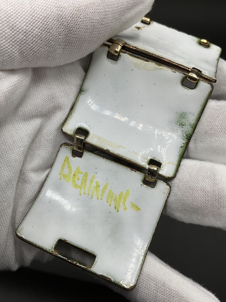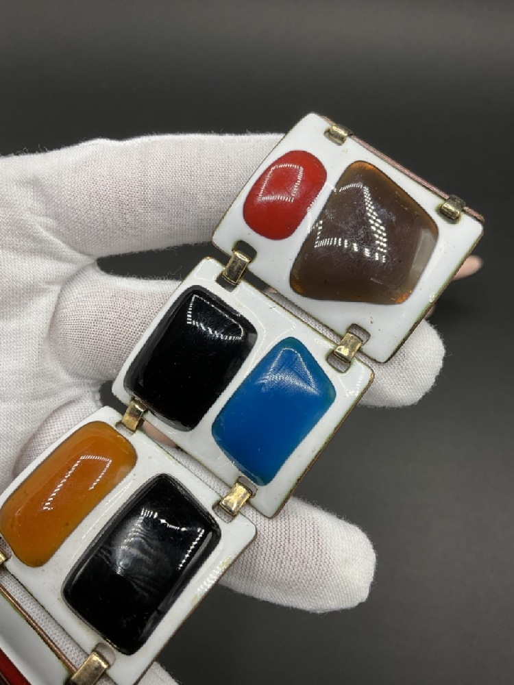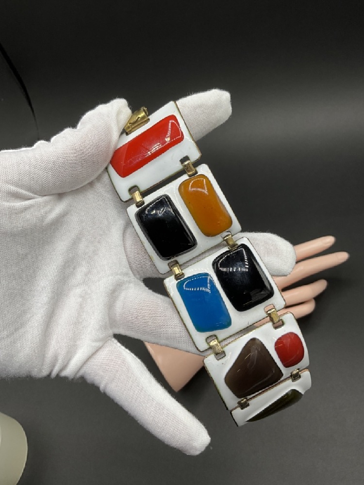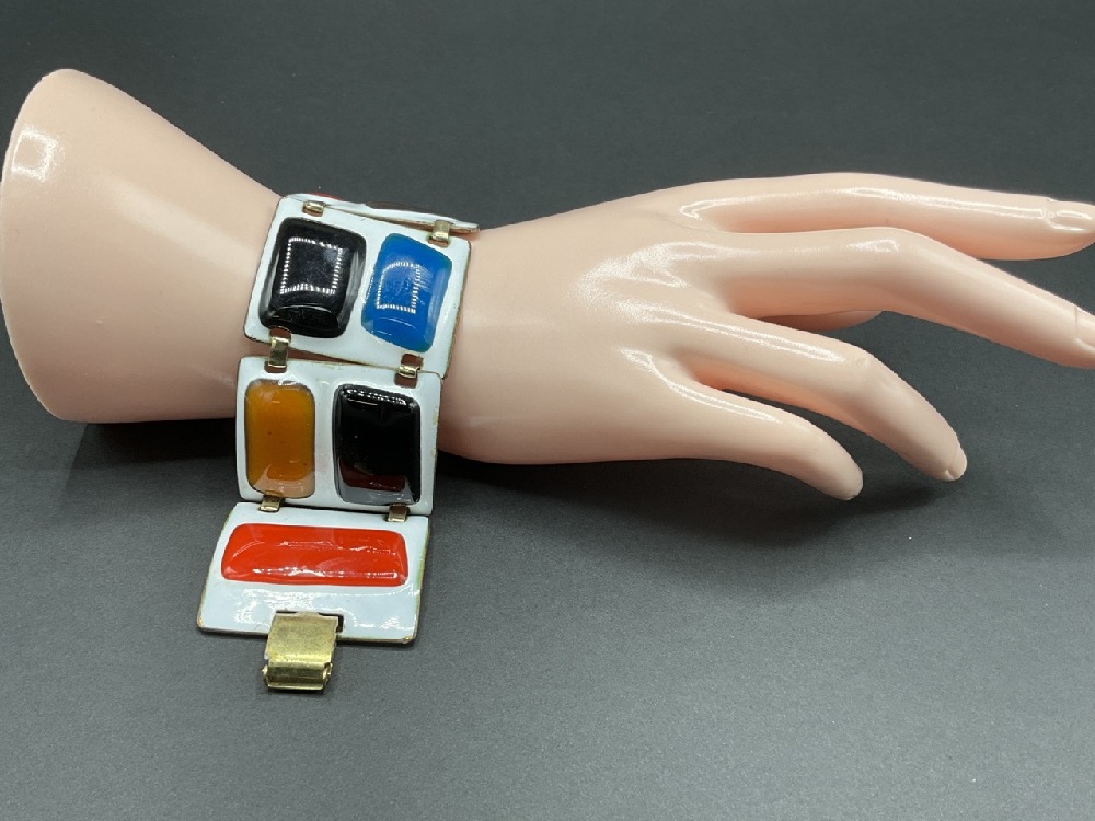 Mid Century Vintage copper enameled geometric shapes bracelet.