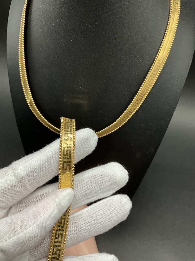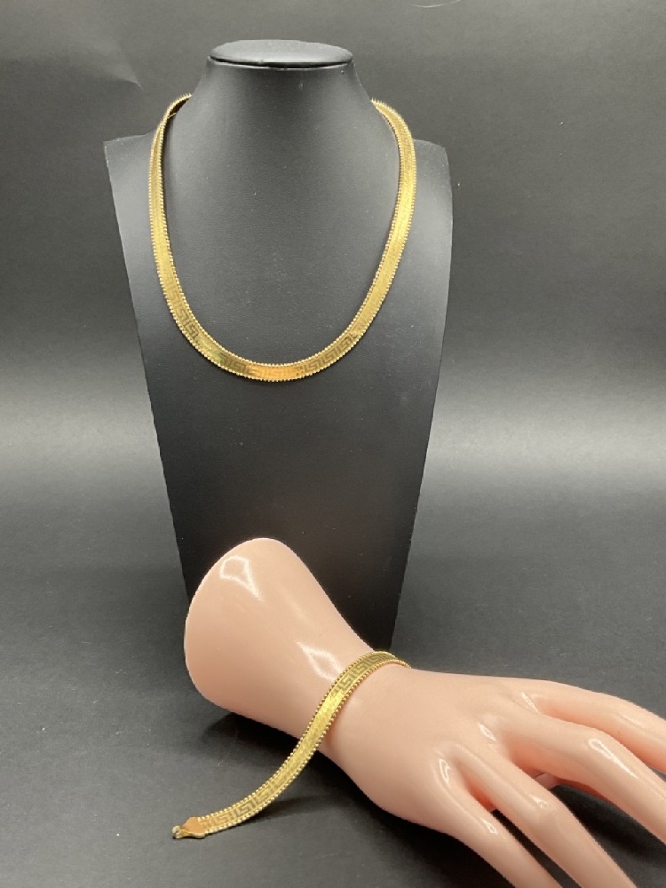 18K Yellow Gold Herringbone Necklace and Matching Bracelet.