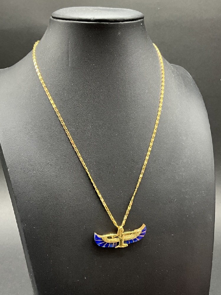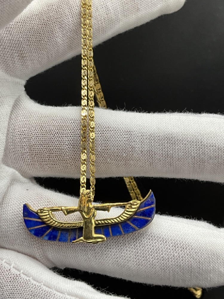 Egyptian 18K Yellow Gold and Lapis Necklace.