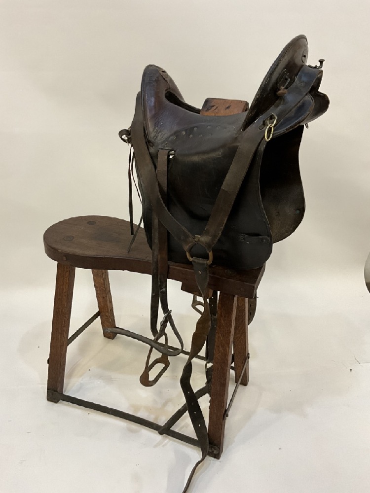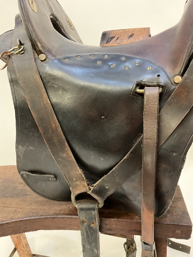 U.S. Army McClellen Riding Saddle Size 11. Stirrups and parts included.