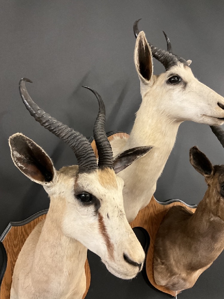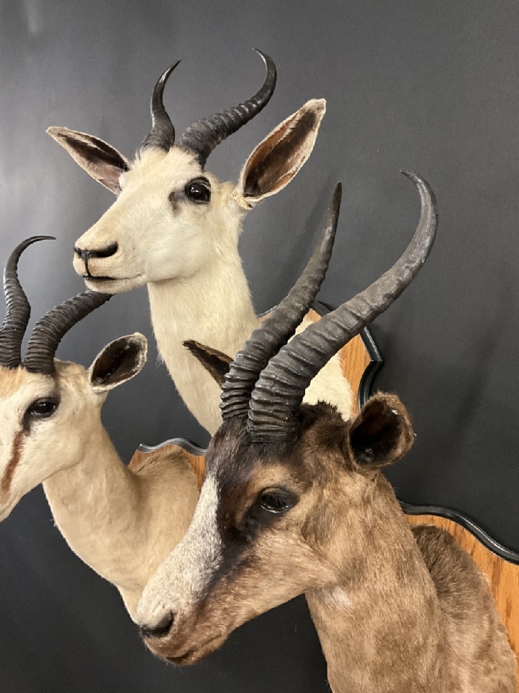 Three (3) Springbok Spring Buck Taxidermy Shoulder Mounts.