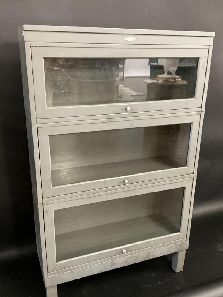 Three Stack Metal Vintage Psychiatric Hospital Bookcase.