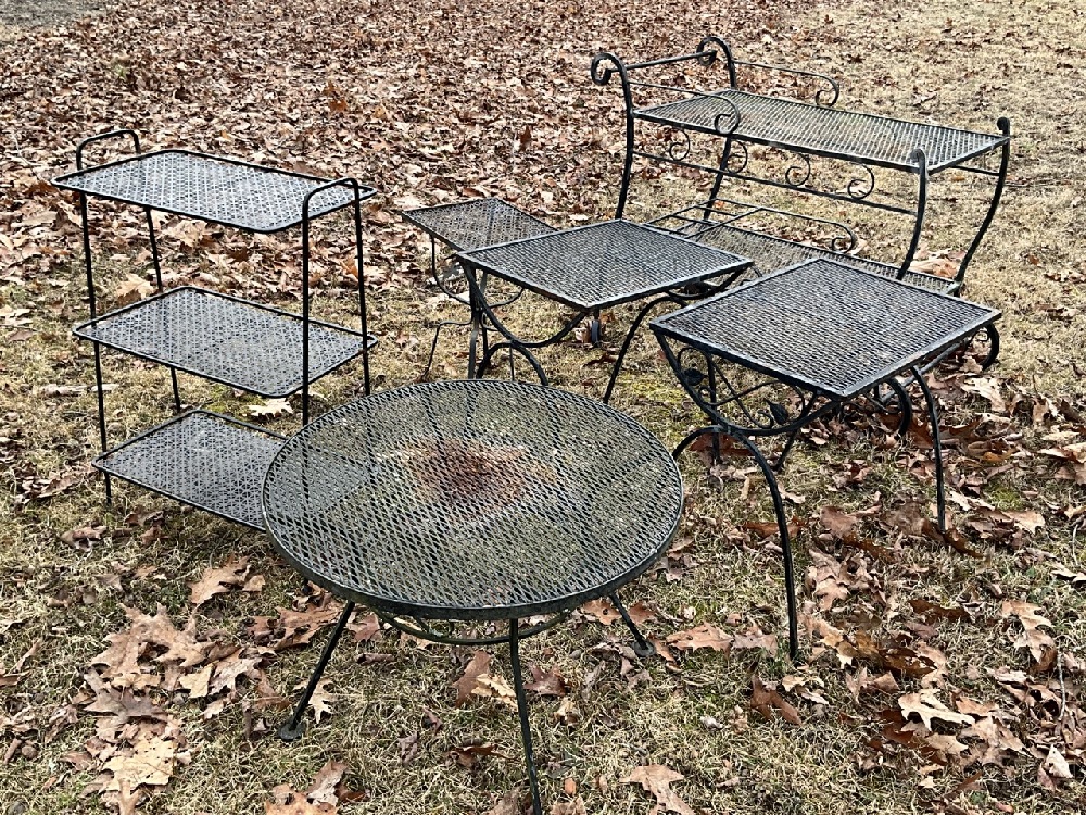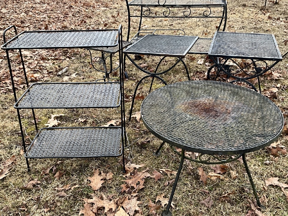 Six Piece Vintage Outdoor Wrought Iron Furniture.