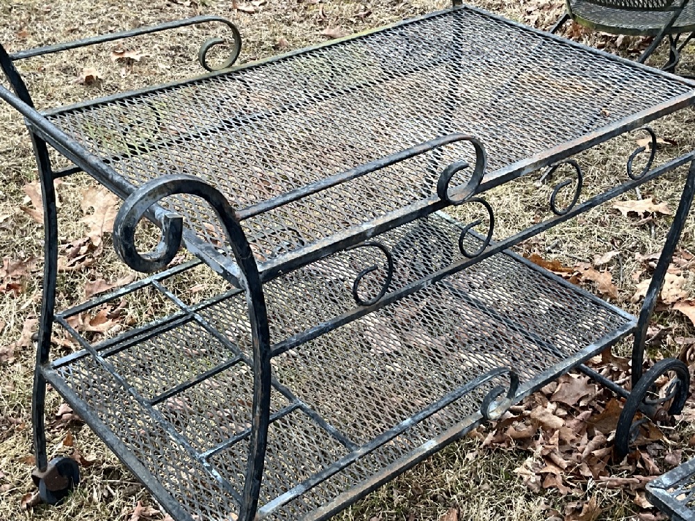 Tea cart, tables and stands. Mesh style and all in very good condition.