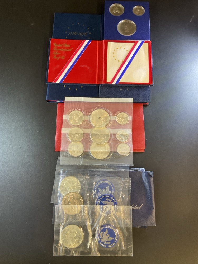 5 Proof Bicentennial Sets, 3 Uncirculated Bicentennial Sets, 3 Uncirculated Eisenhower Dollars