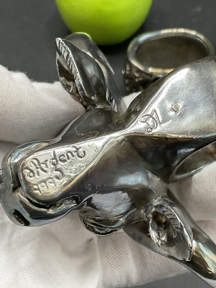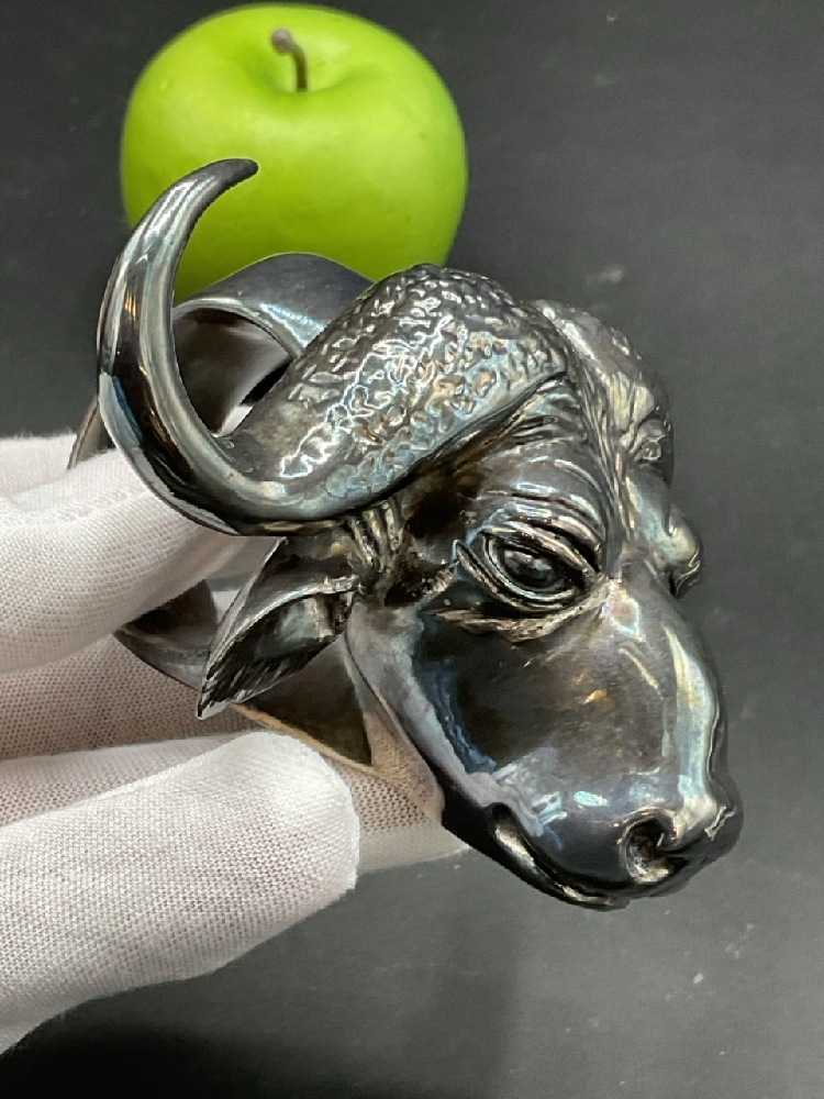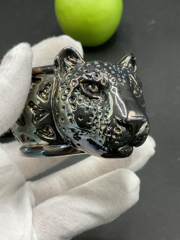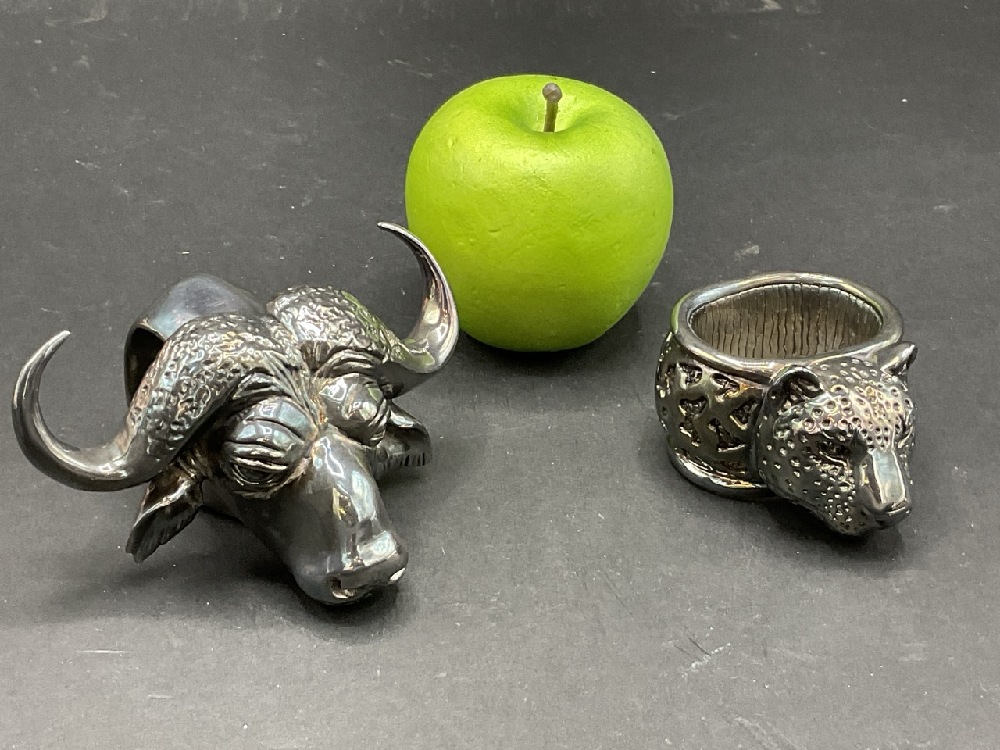 .999 Pure Silver Buffalo and Leopard Napkin Rings.
