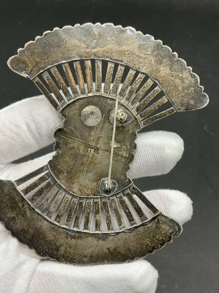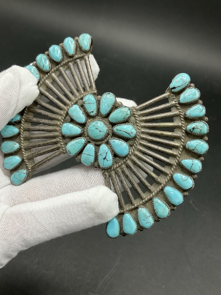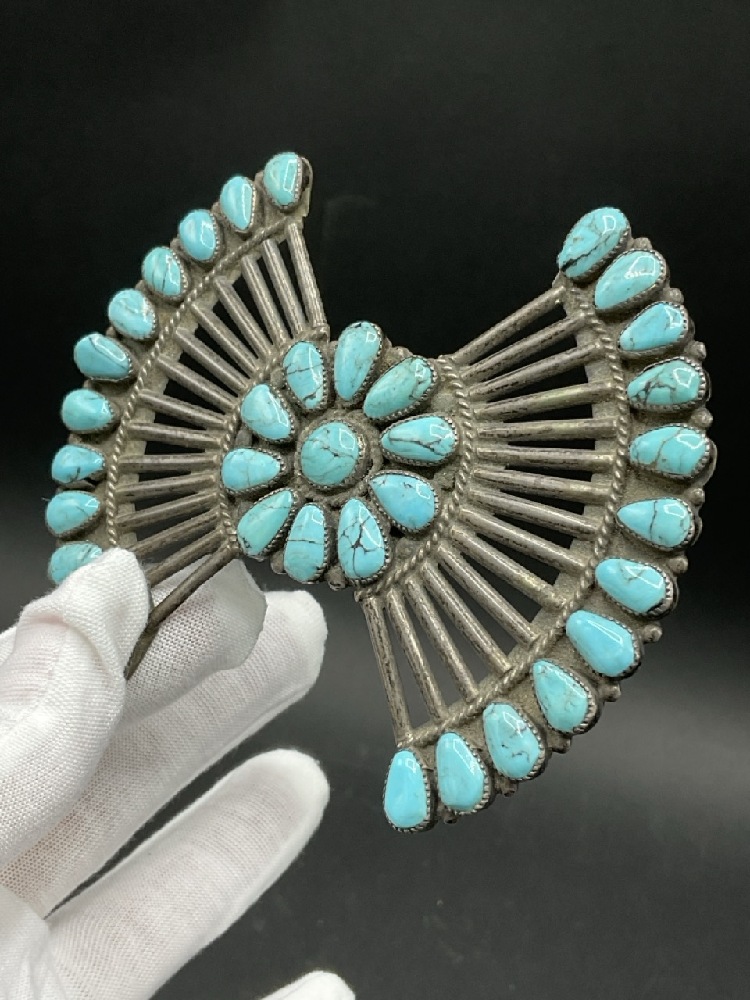 BTC Navajo Kingman Large Turquoise and Silver Brooch.'