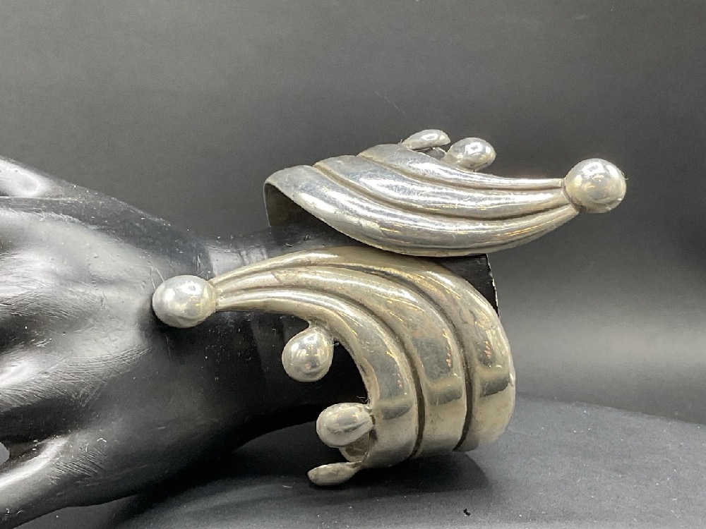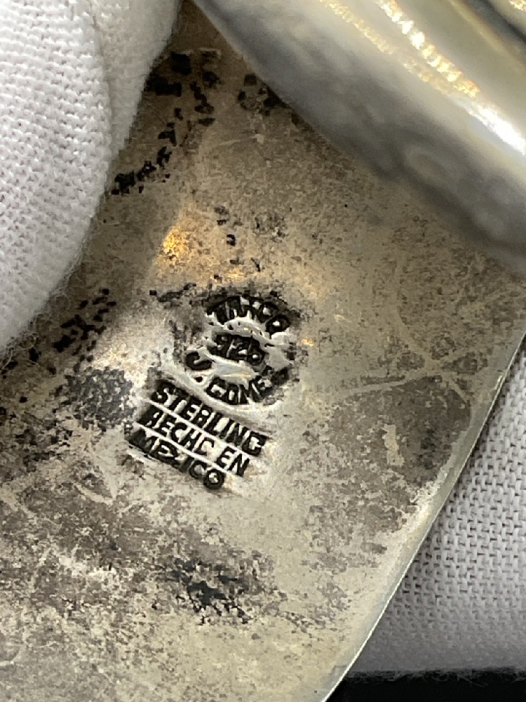 Vintage J. Gomex Mexican Taxco Sterling Silver Hinged Cuff Bracelet.