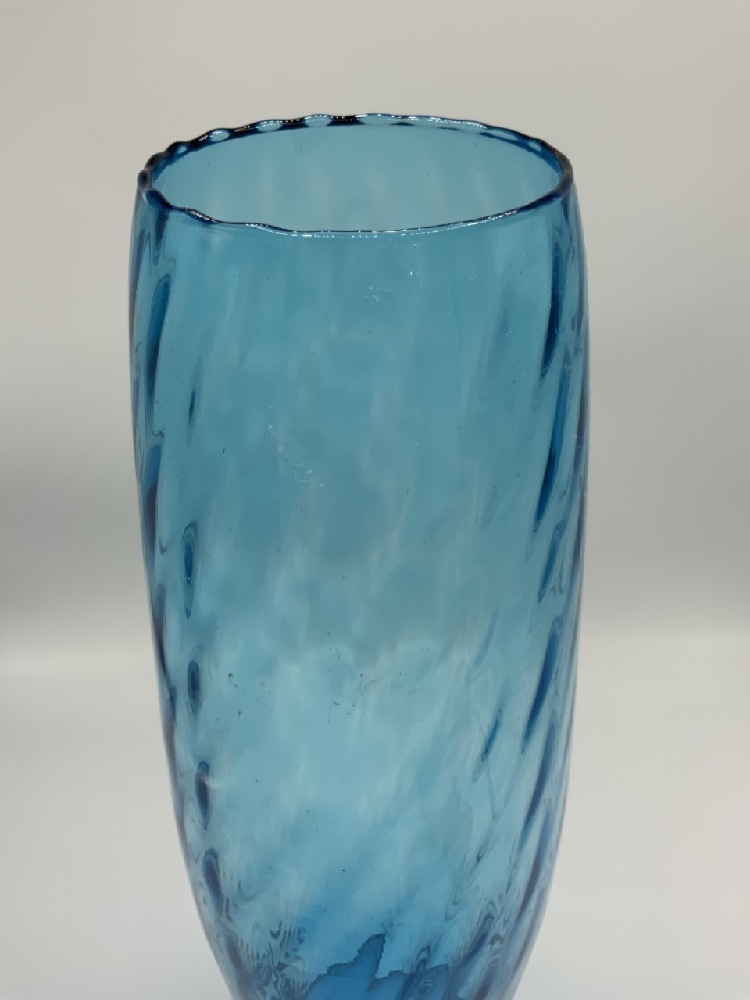 Large Mid Century Aqua Blue Glass Vase.