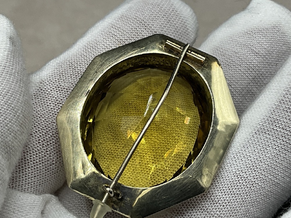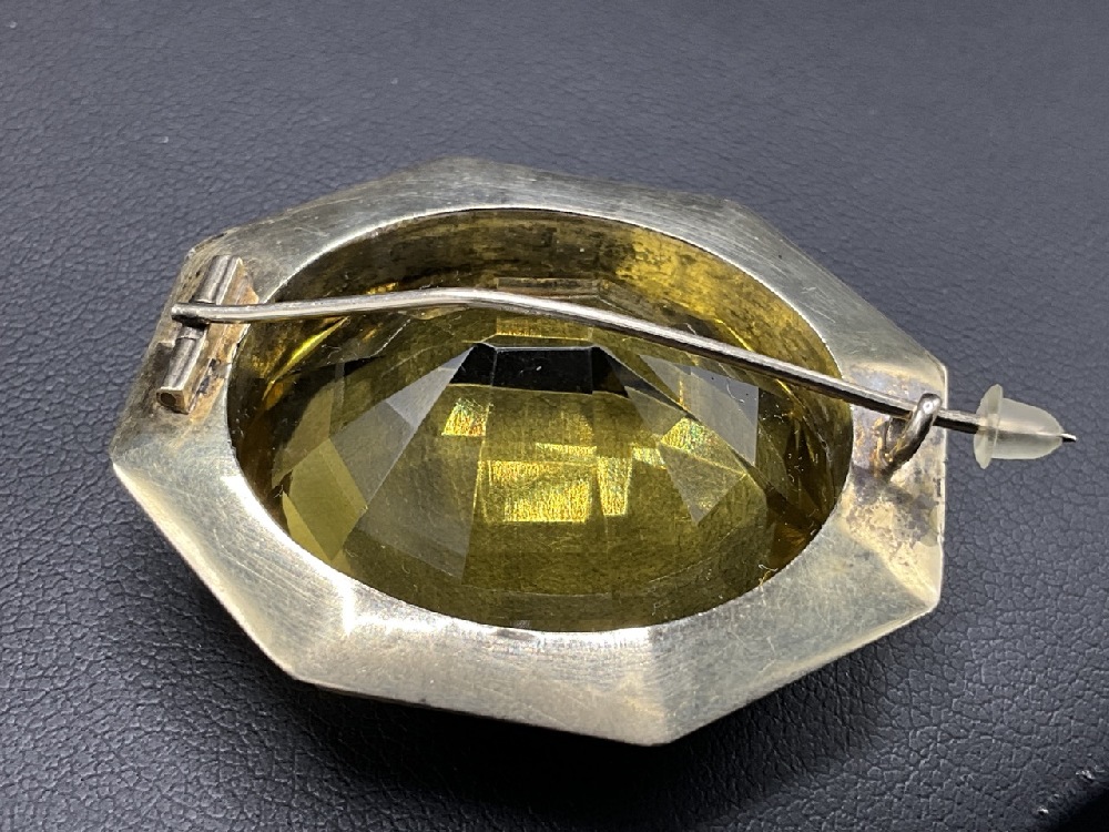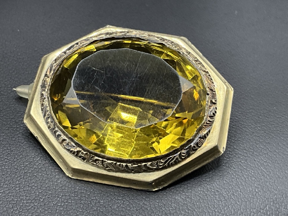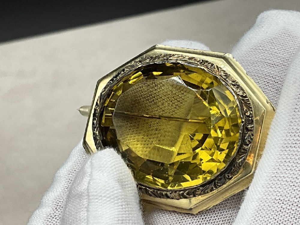 Antique 14k Gold Citrine Brooch 28mm X 14mm.