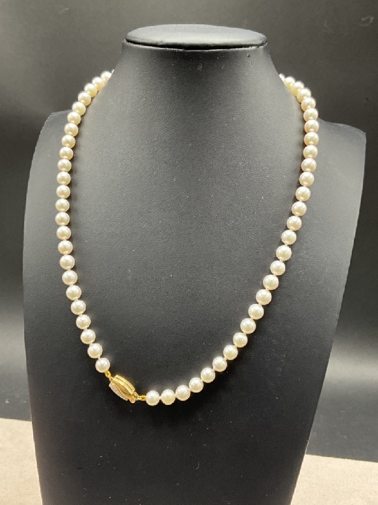18 Freshwater Pearls Necklace with 14K Doubled Sided Diamond Encrusted Clasp.