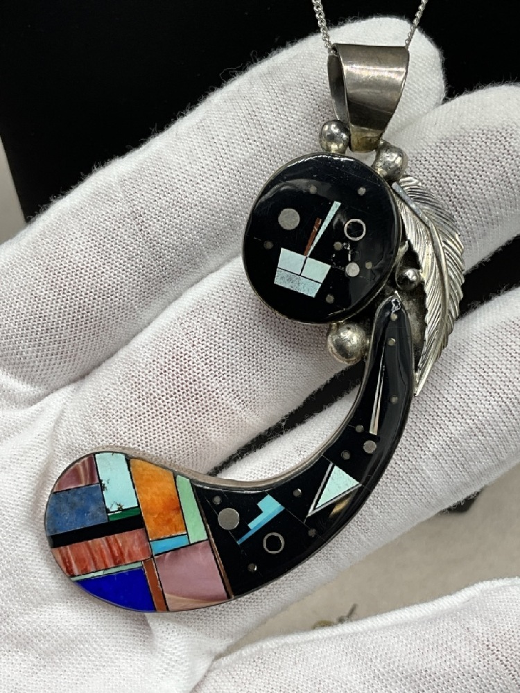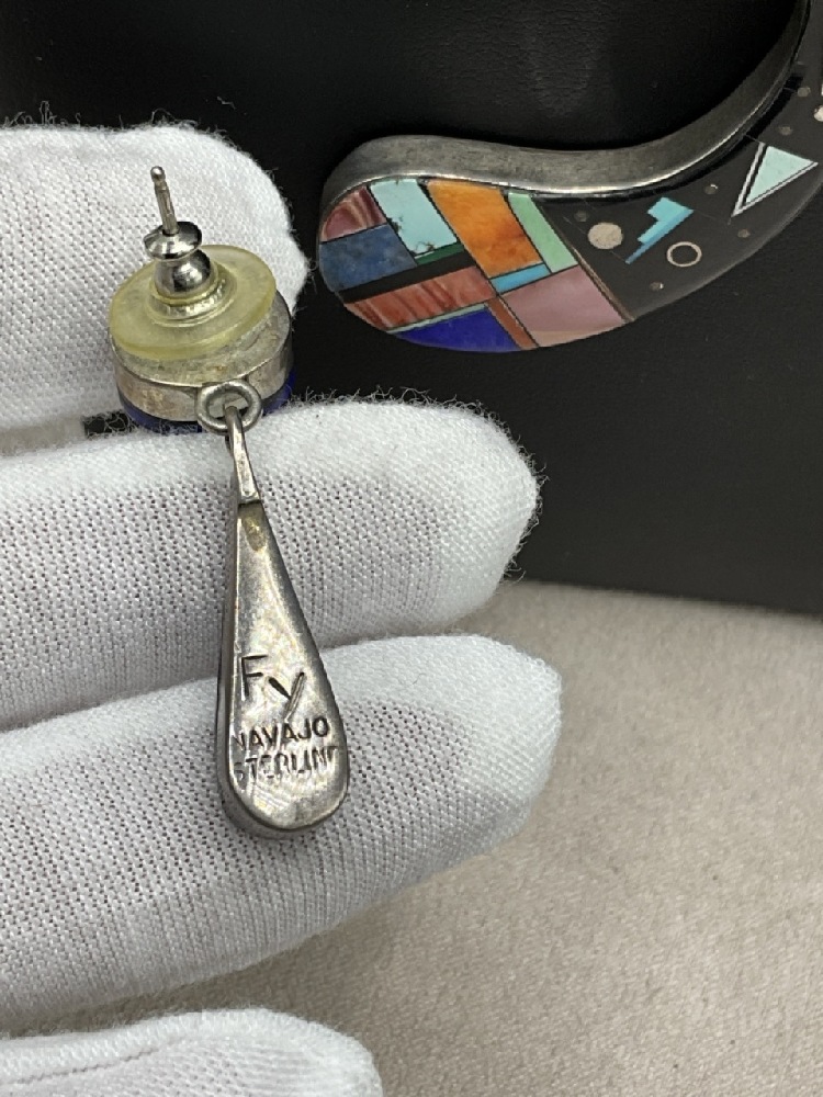 Frank Yellowhorse Navajo Sterling Silver Lg. Pendant Necklace and Earrings.