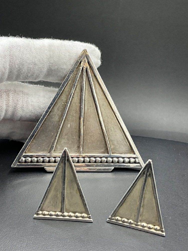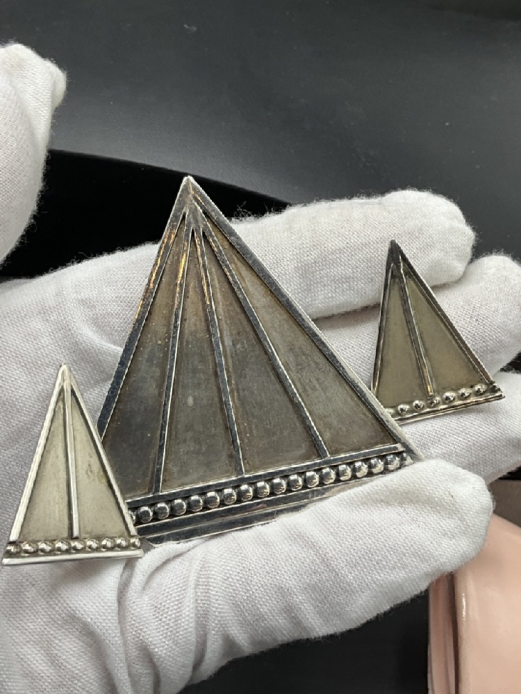 MCM Erickson Signed Sterling Sailboat Brooch and Earrings.