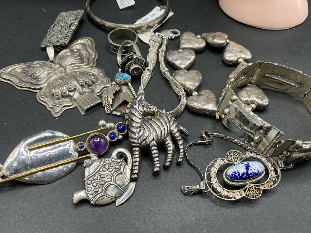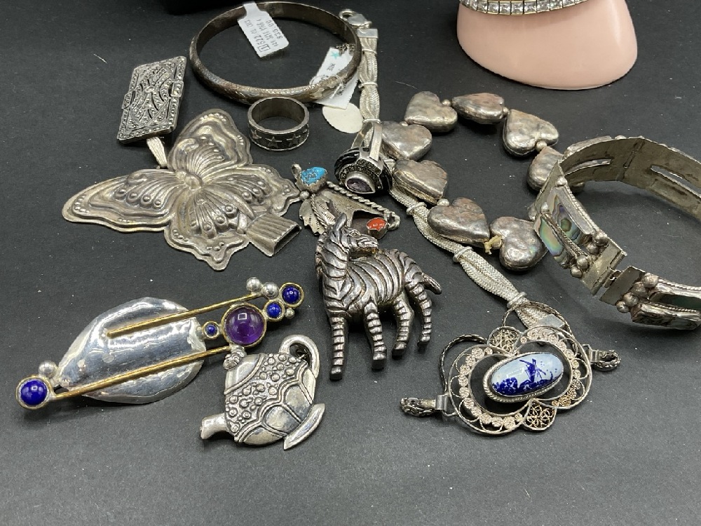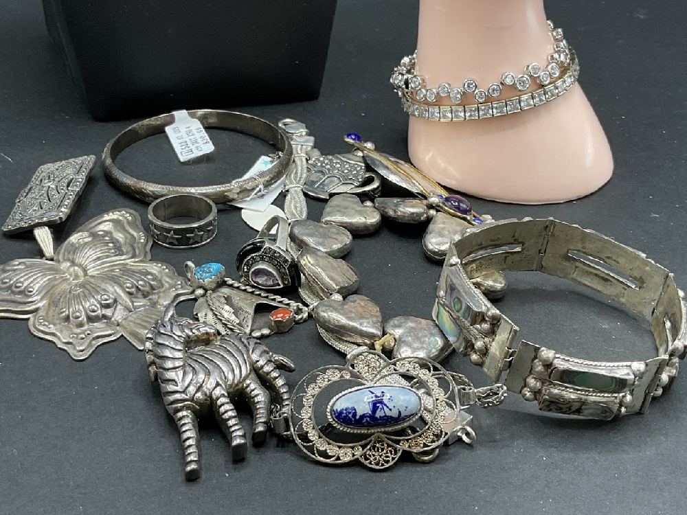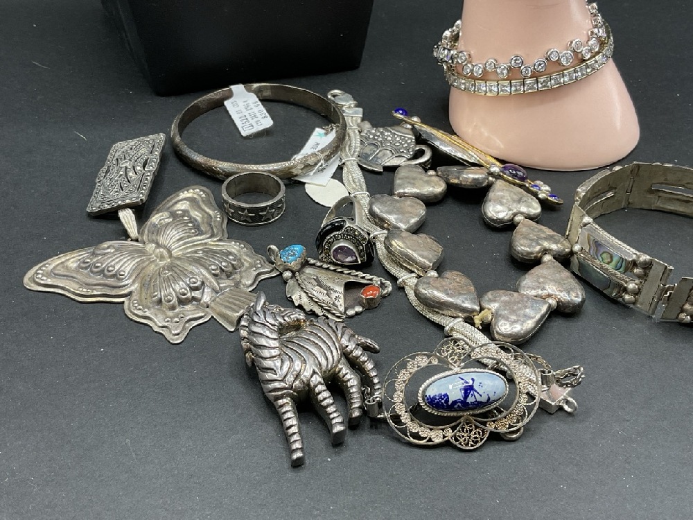 Estate compiled sterling silver jewelry group. As seen in photograph preview.