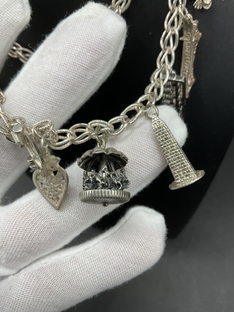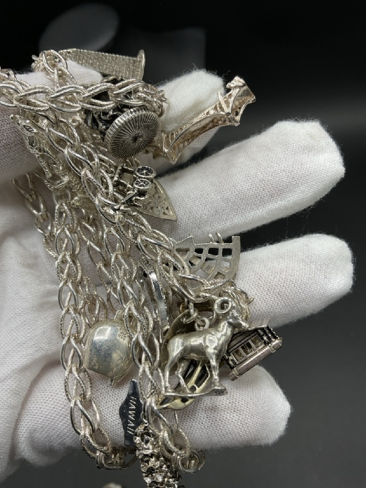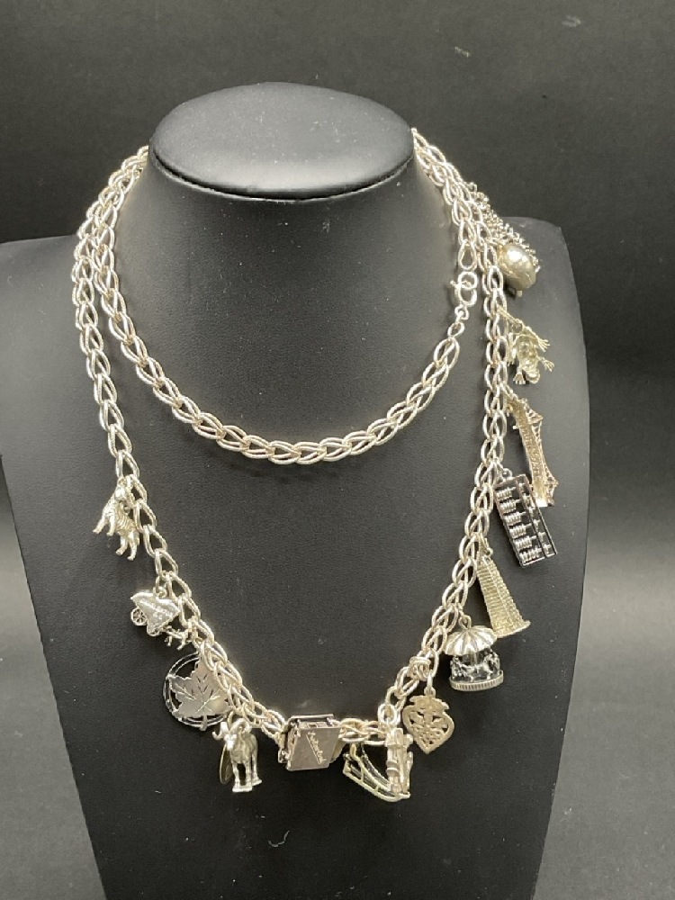 Sterling Silver Charm Necklace with Eighteen (18) Charms. Not all charms are sterling.