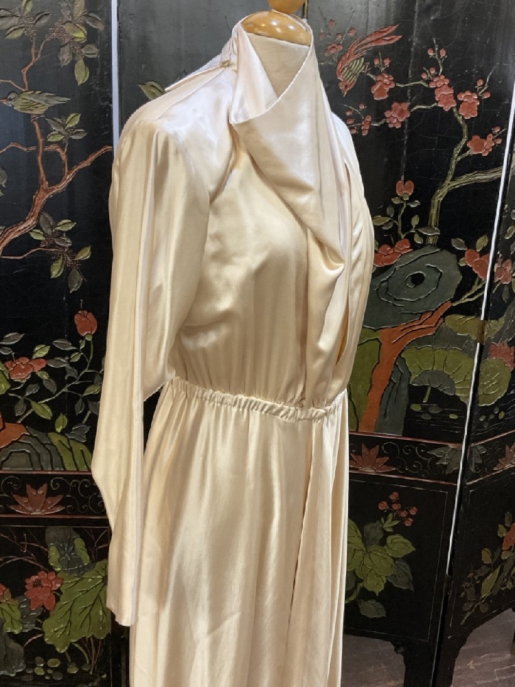 Halston Goddess Style Silk Gown with Slip. Size 8Small stain noted. Appears to be washable. Please see photograph preview.