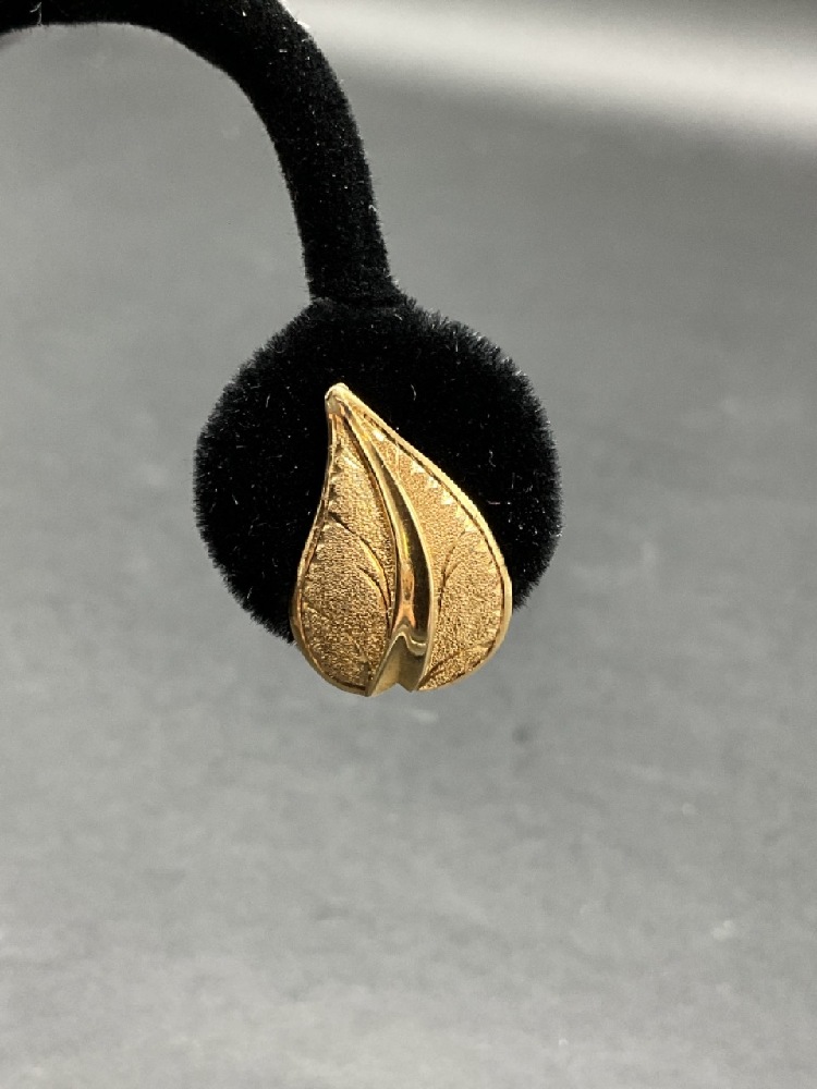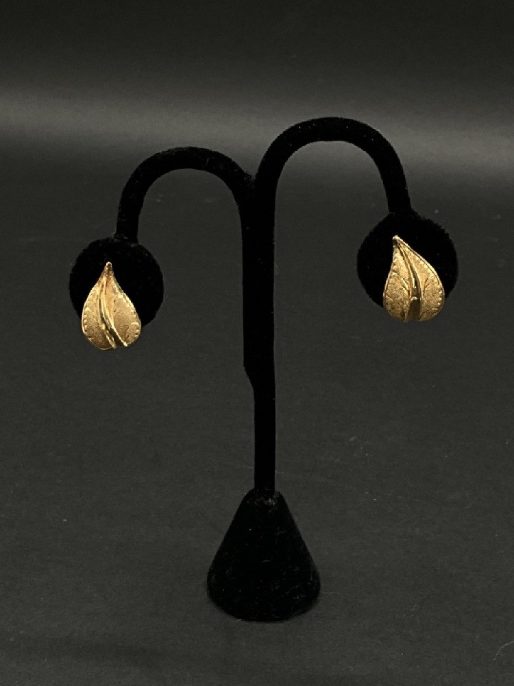 18K Gold Leaf Form Clip Earrings.