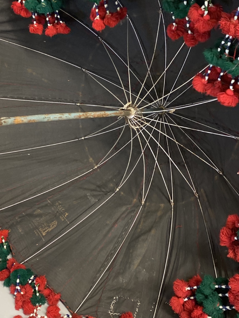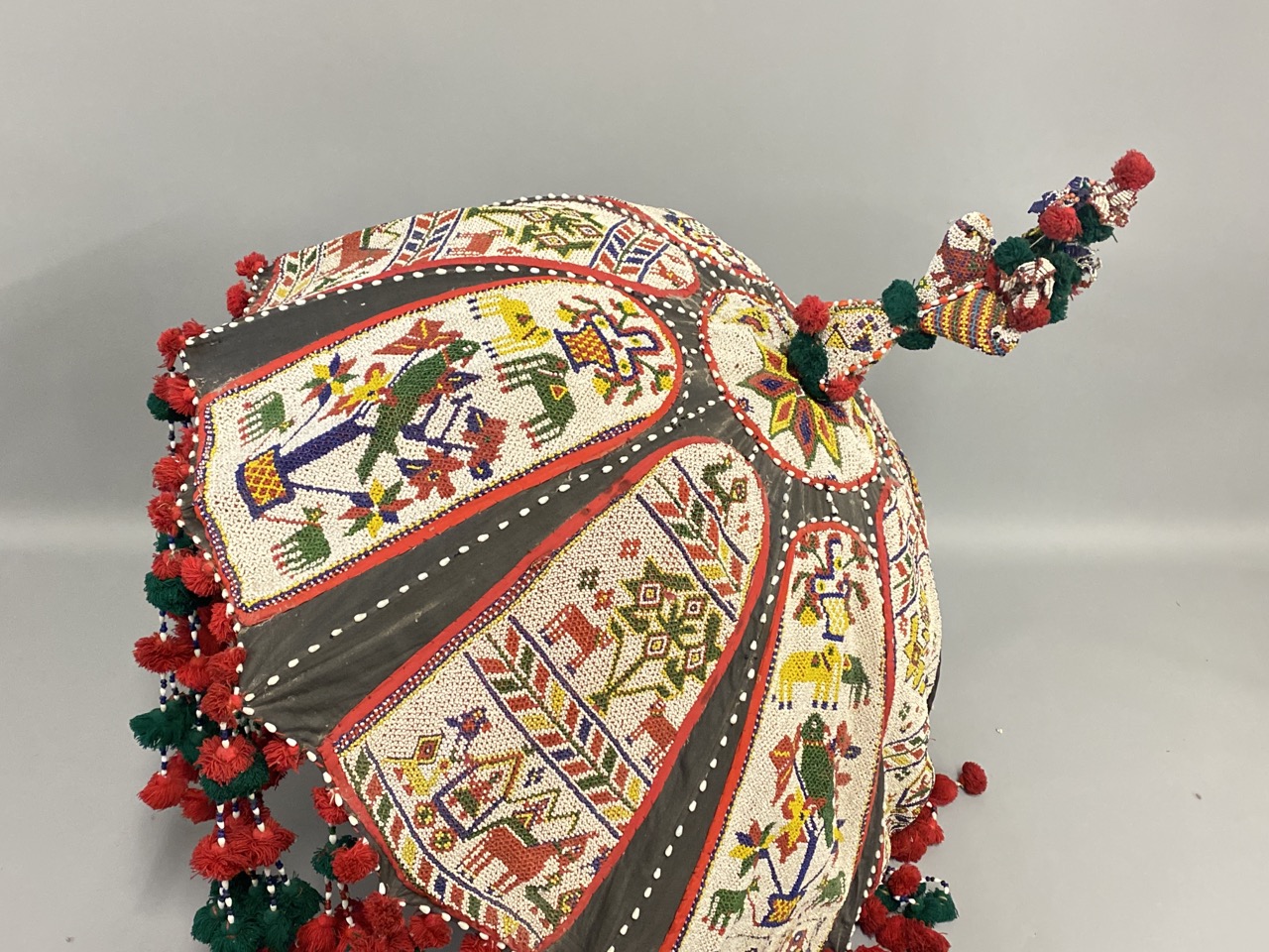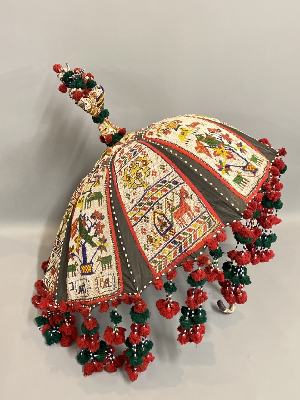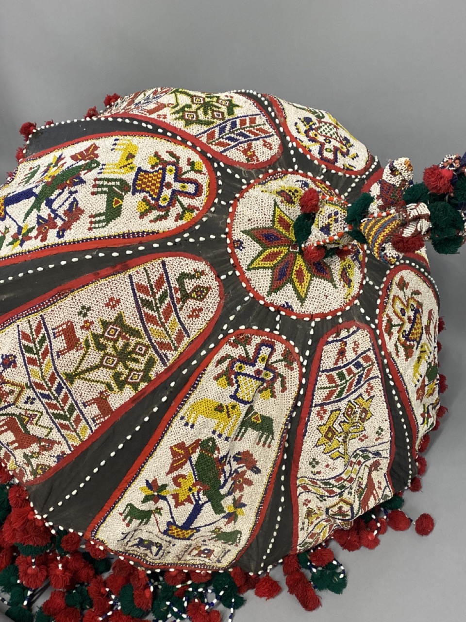 A large vintage Indian ceremonial beaded umbrella.
