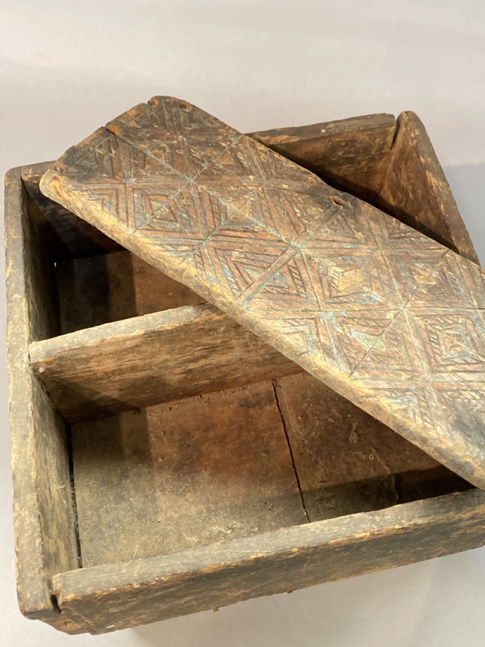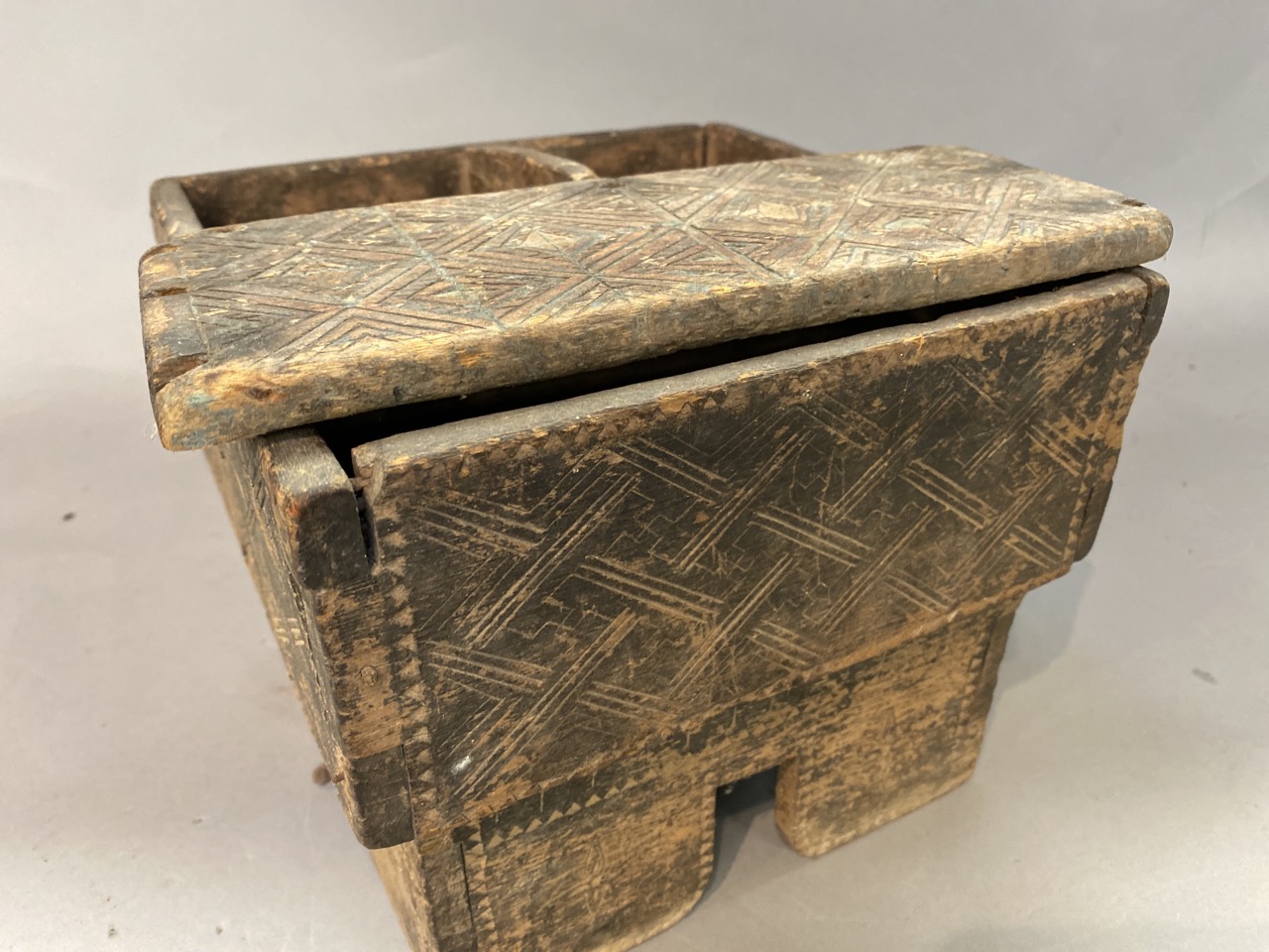 Antique Middle Eastern carved box/caddy 7 inches high 8” x 8 1/2”