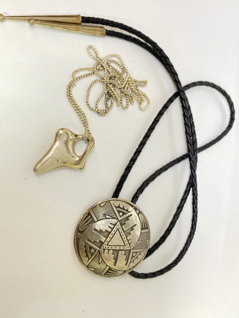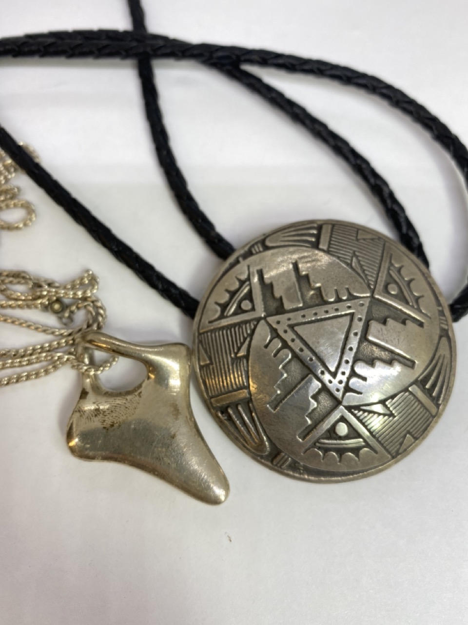 Sterling Silver Indian Bolo and Gianni solid sterling silver tooth pendant necklace.