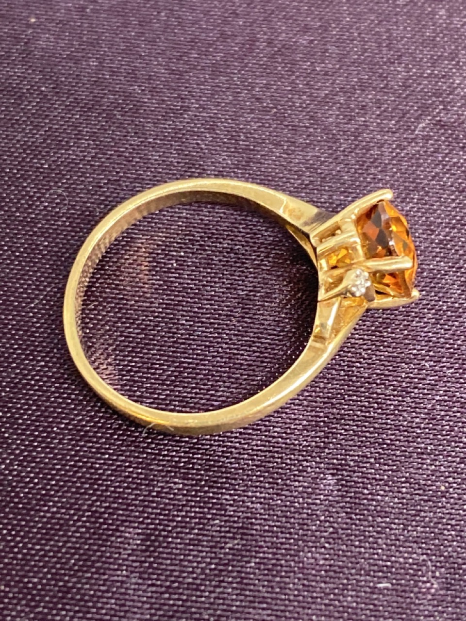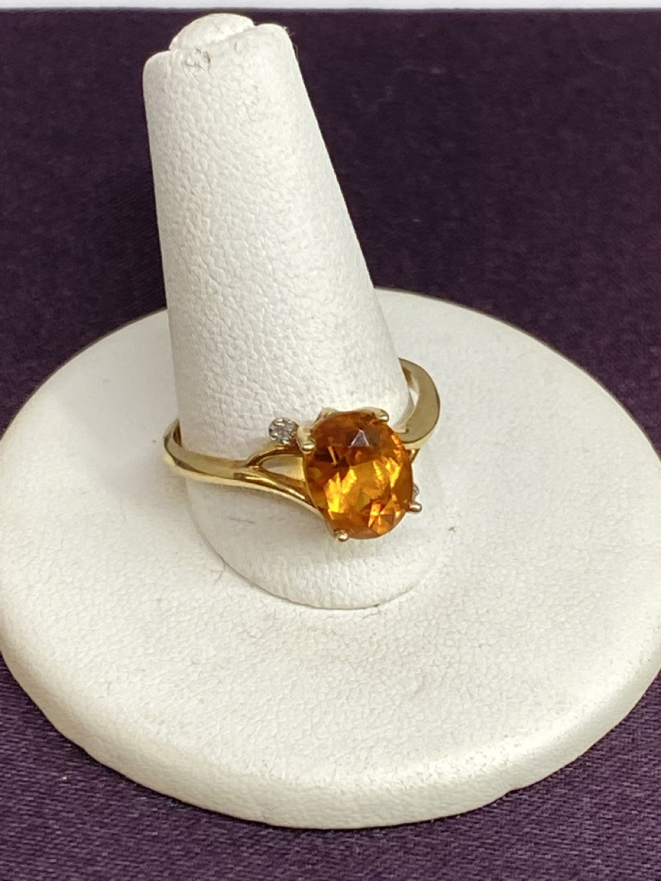 10K Simulated Citrine And Diamond Ring.