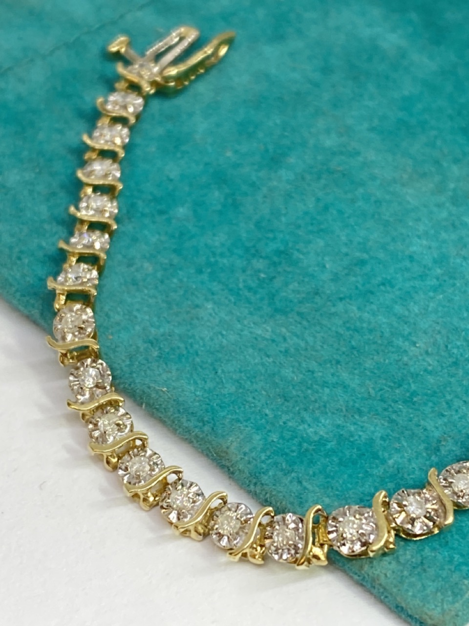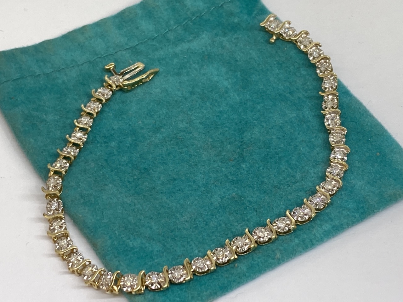 10K gold diamond tennis bracelet.