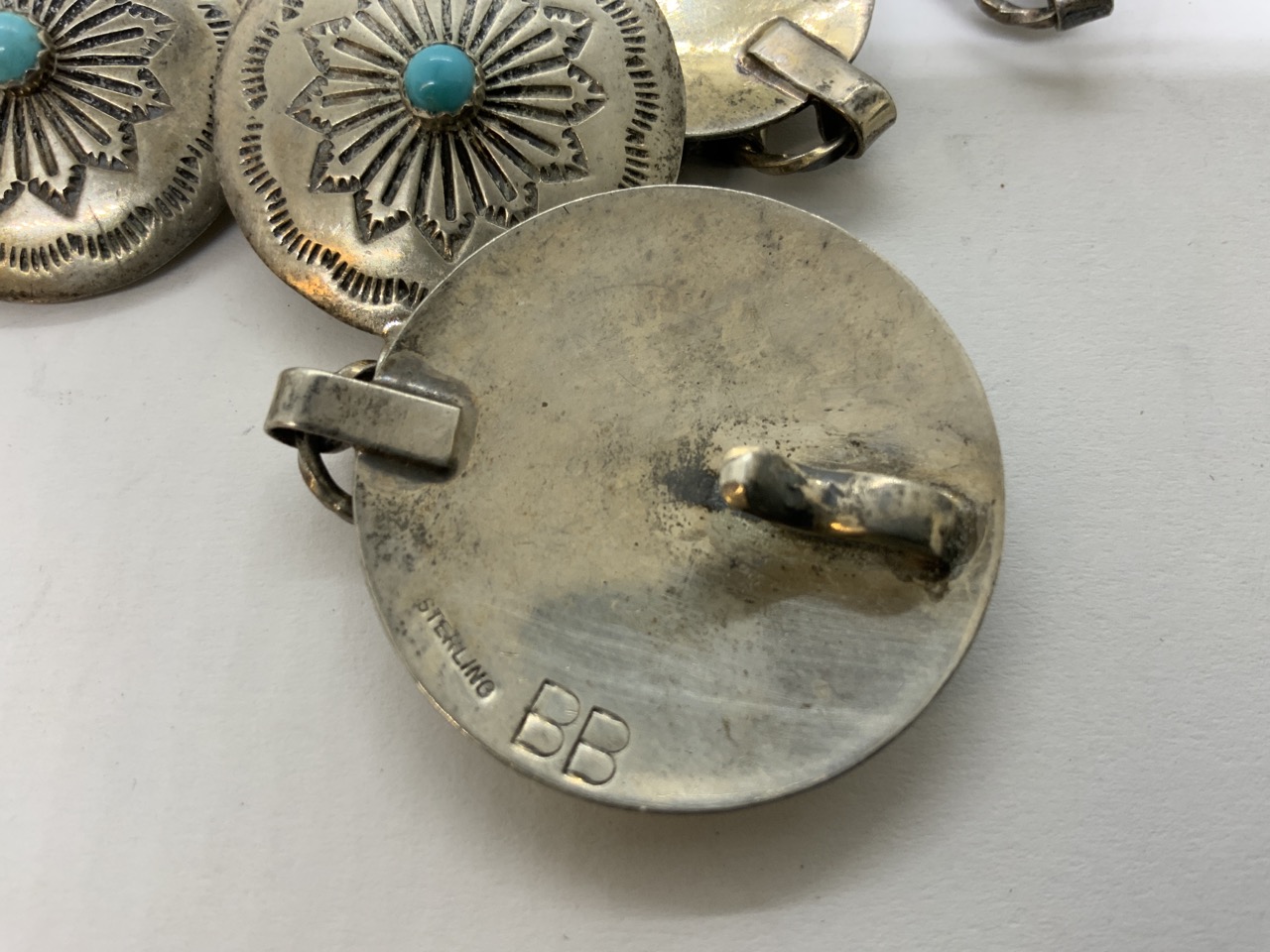 Navaho American Indian turquoise and sterling silver belt. Signed BB sterling.