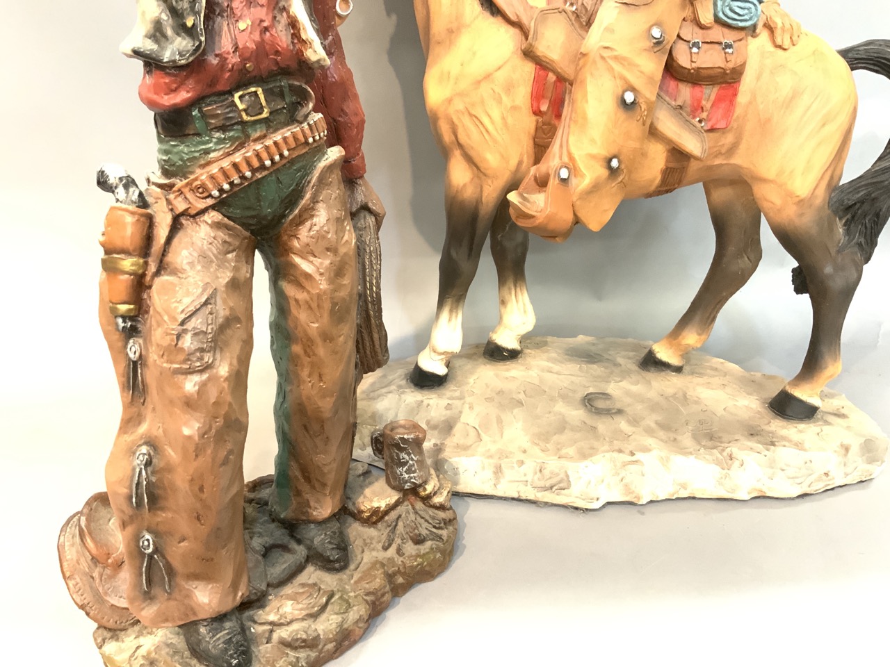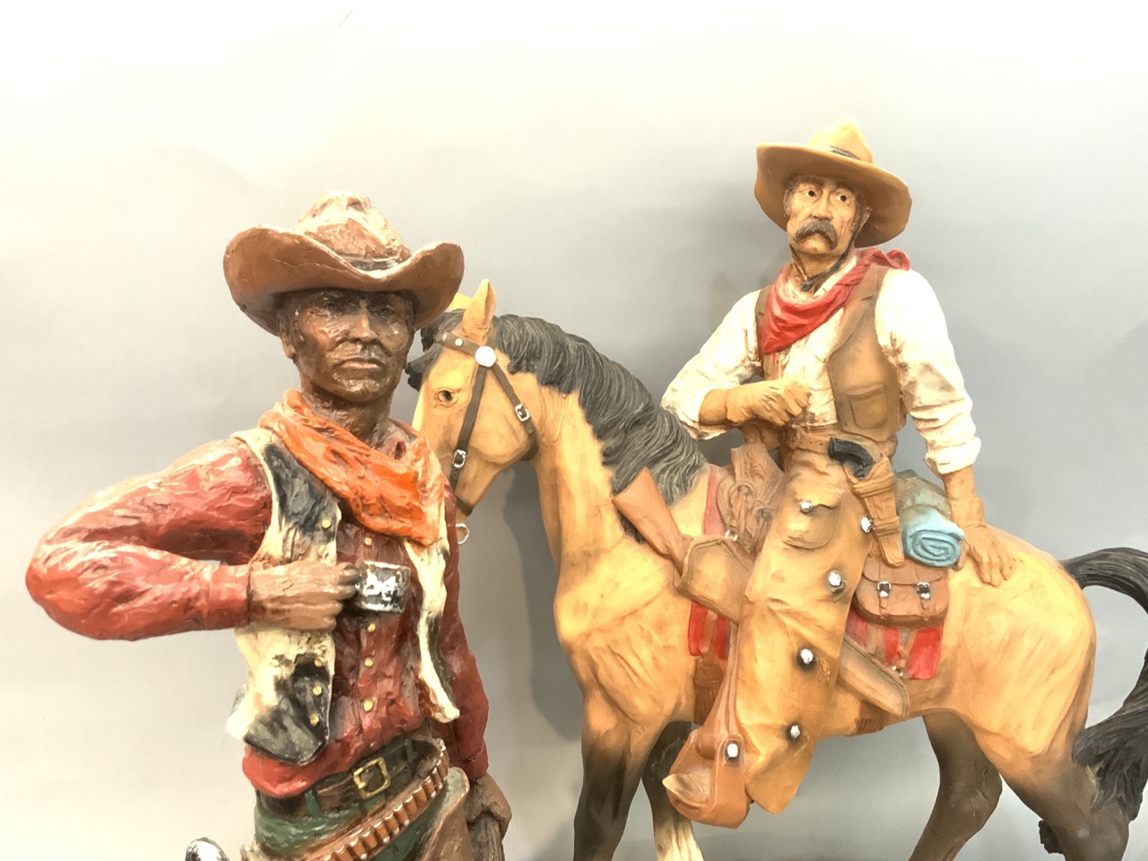 Two (2) Decorative Cowboy Statues. 1980's era. Resin plastic material.