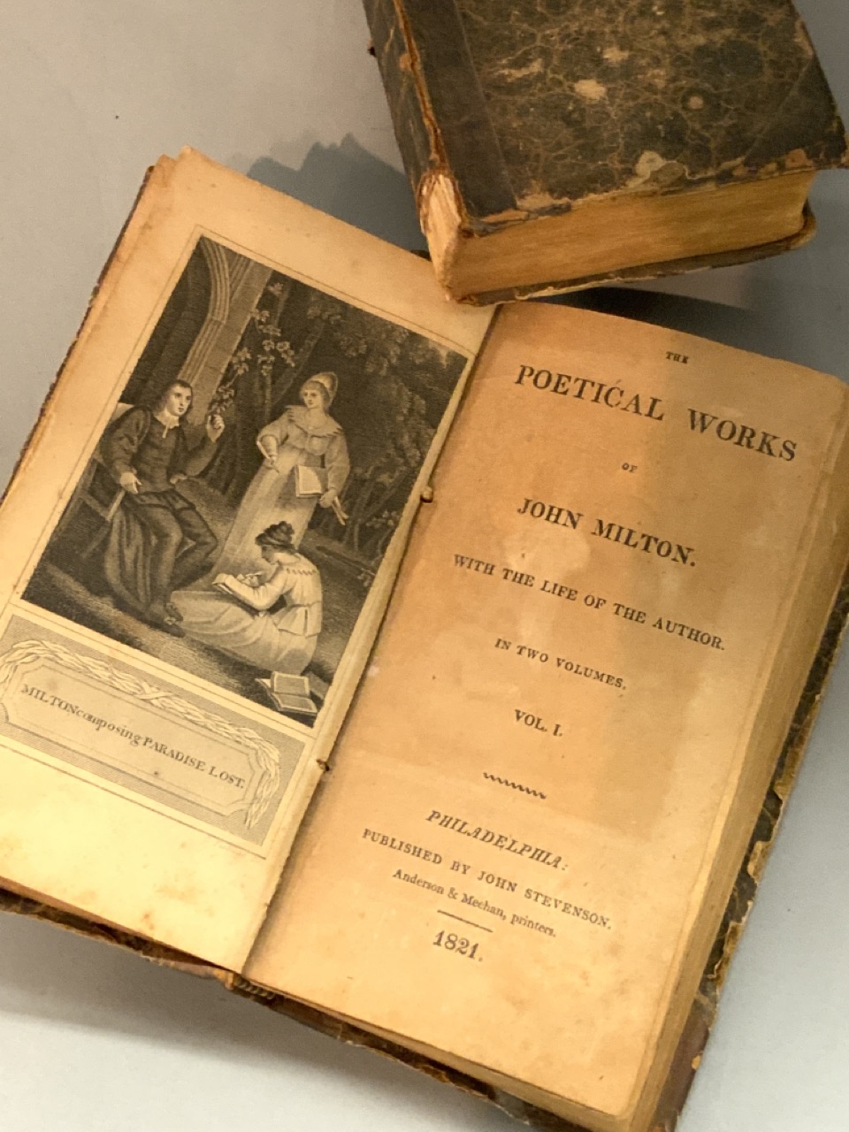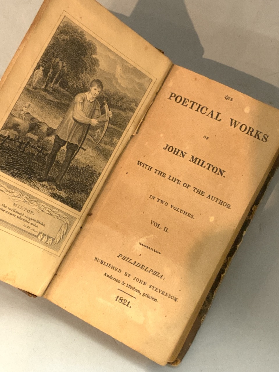 1821 Poetical works of John Milton published John Stevenson by Anderson and Meehan. 2 vols. pocket size editions.