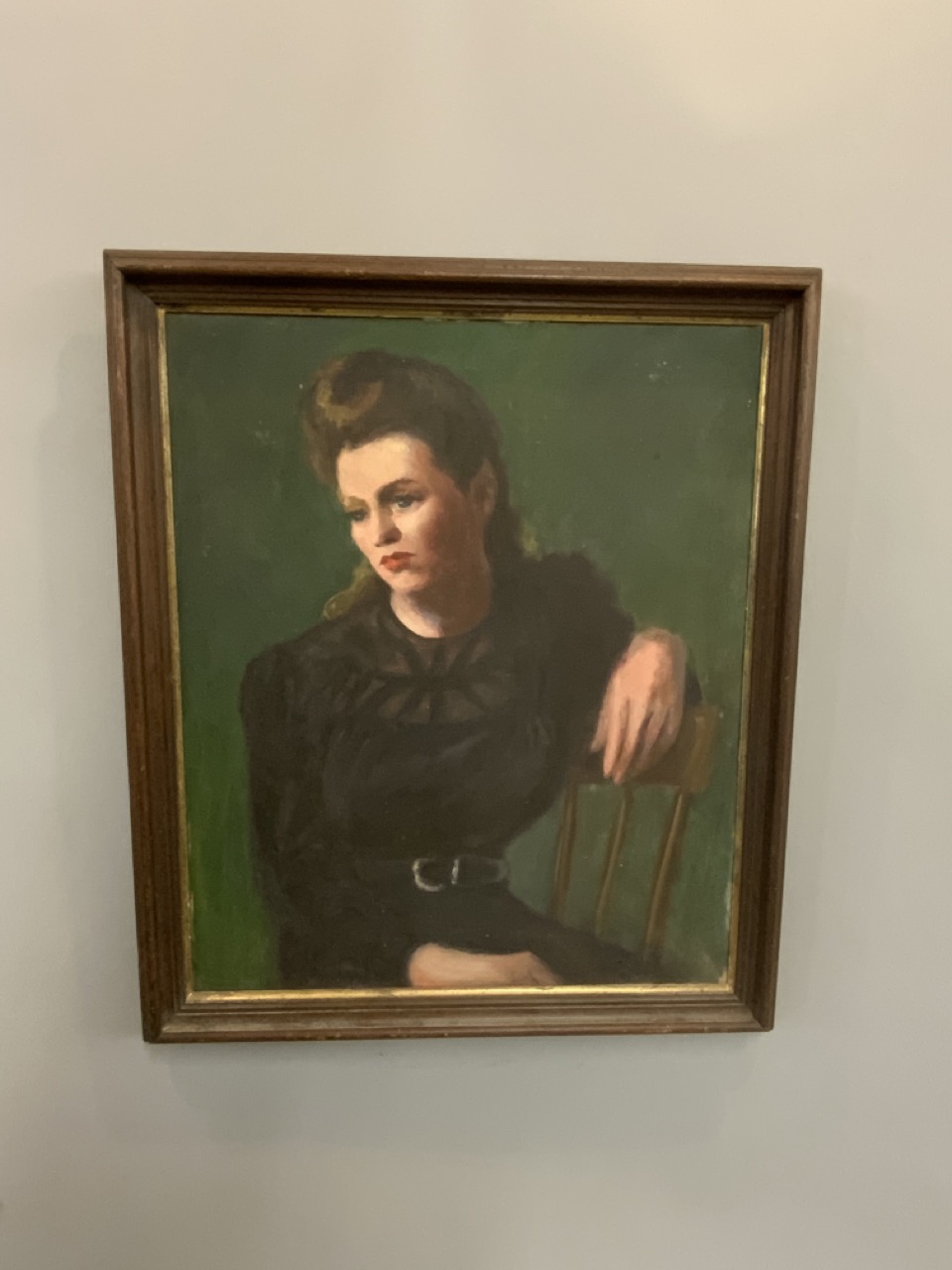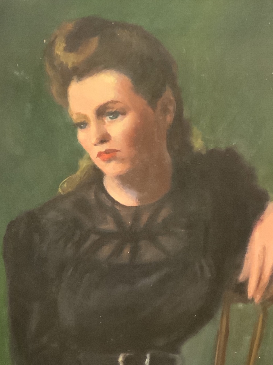 1940's Female portrait oil painting. Crudely done.