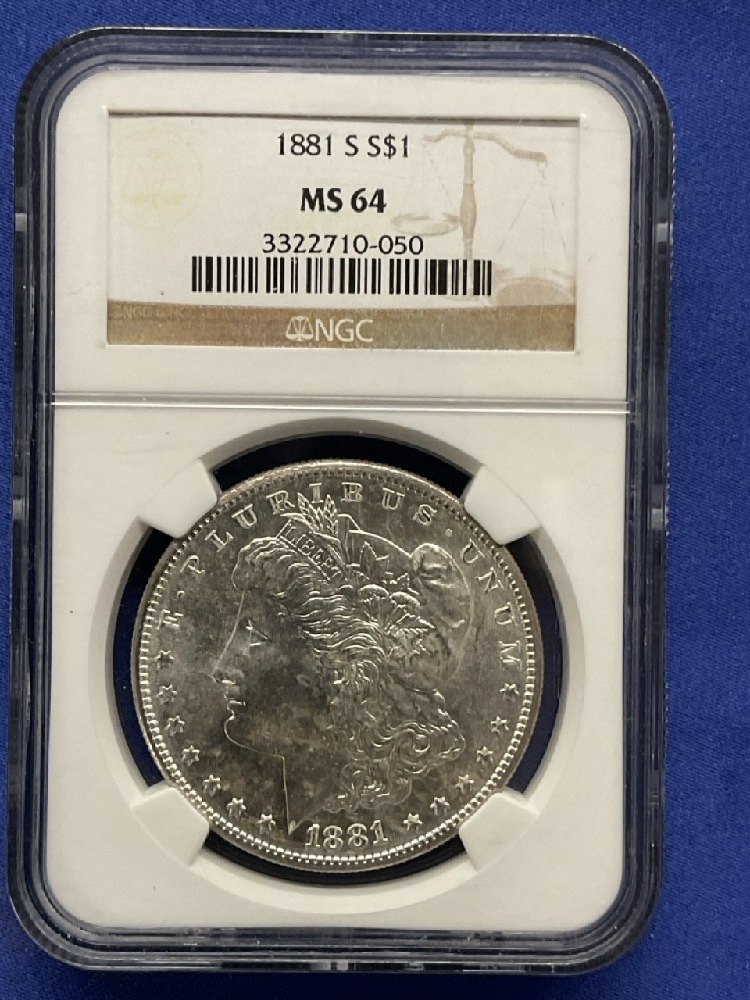 U.S. Morgan Silver Dollar MS 64 1881 S NGC.