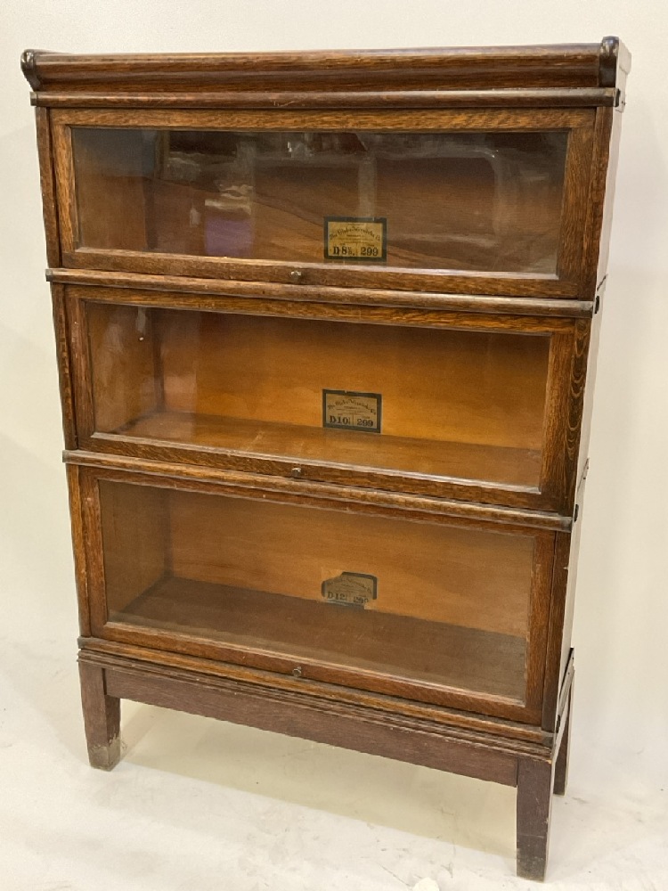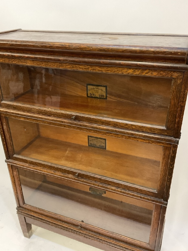 Three (3) Stack Oak Globe Wernicke Stacking Lawyer's Bookcase.