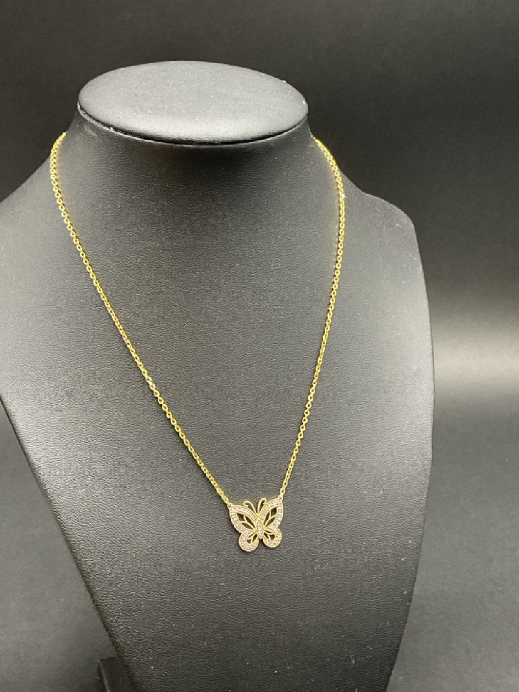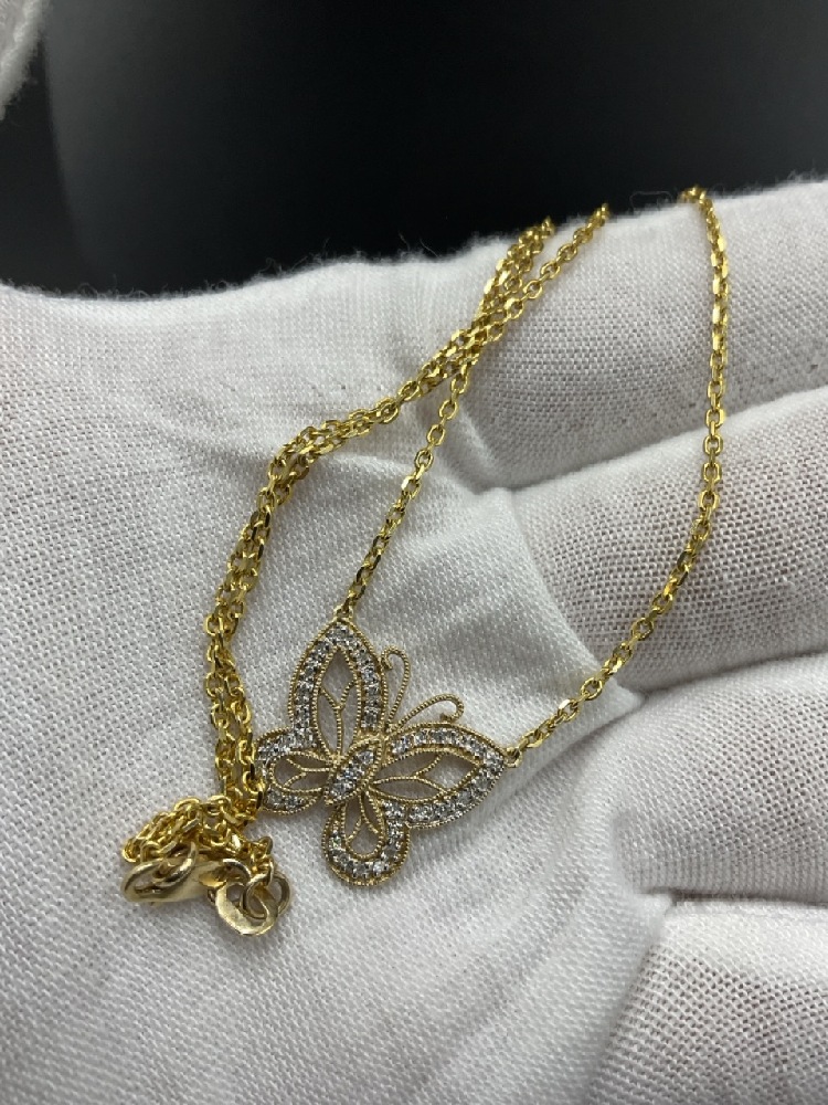 14K CZ Butterfly Necklace 16” Length.