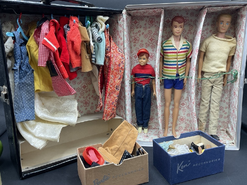60's Barbie KEN, ALLEN and RICKY Dolls with Case and Clothes. As seen in photograph preview.