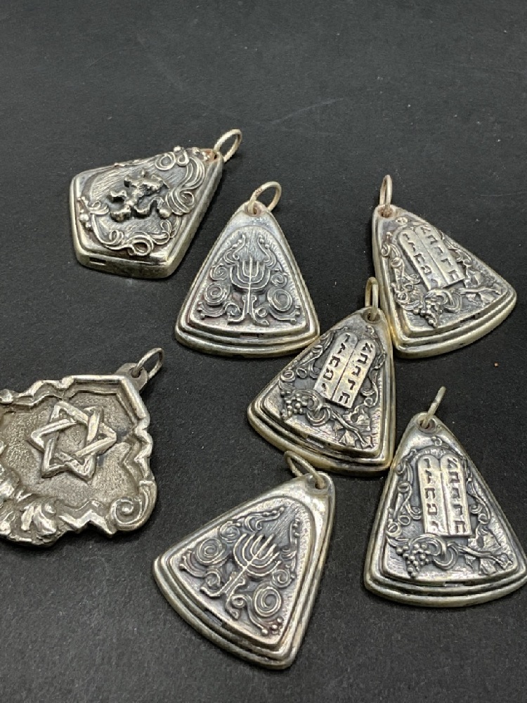 Seven (7) Henryk Winograd .999 Silver Judaica Jewelry Pendants.