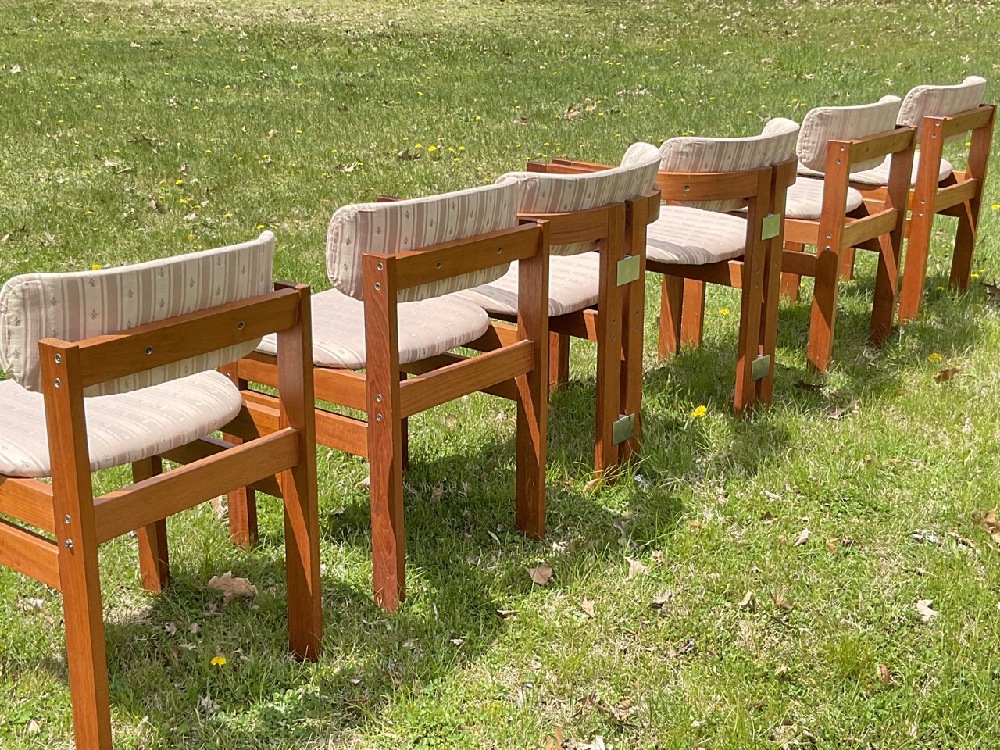 Set of Six (6) MCM Modern Dining Room Chairs. Four side chairs and two arm chairs.
