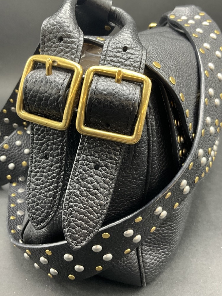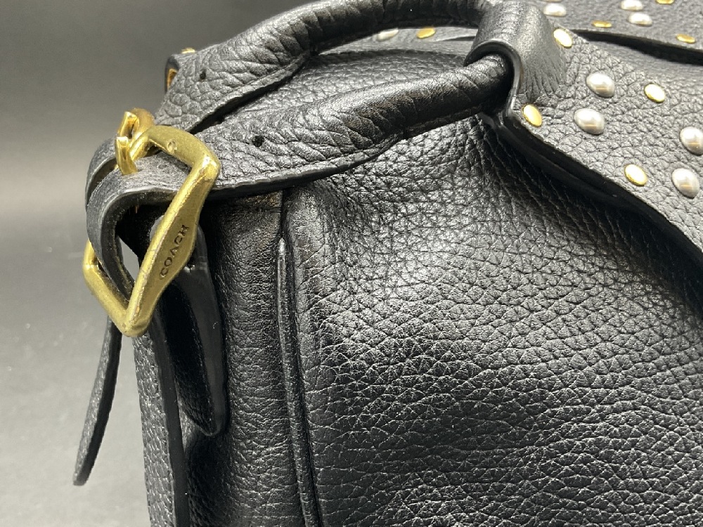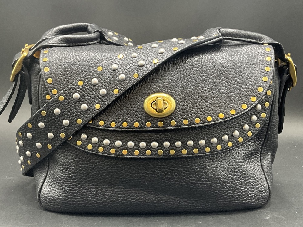 Black Leather Brass Studded Coach Crossbody “Tabitha Simmons”.