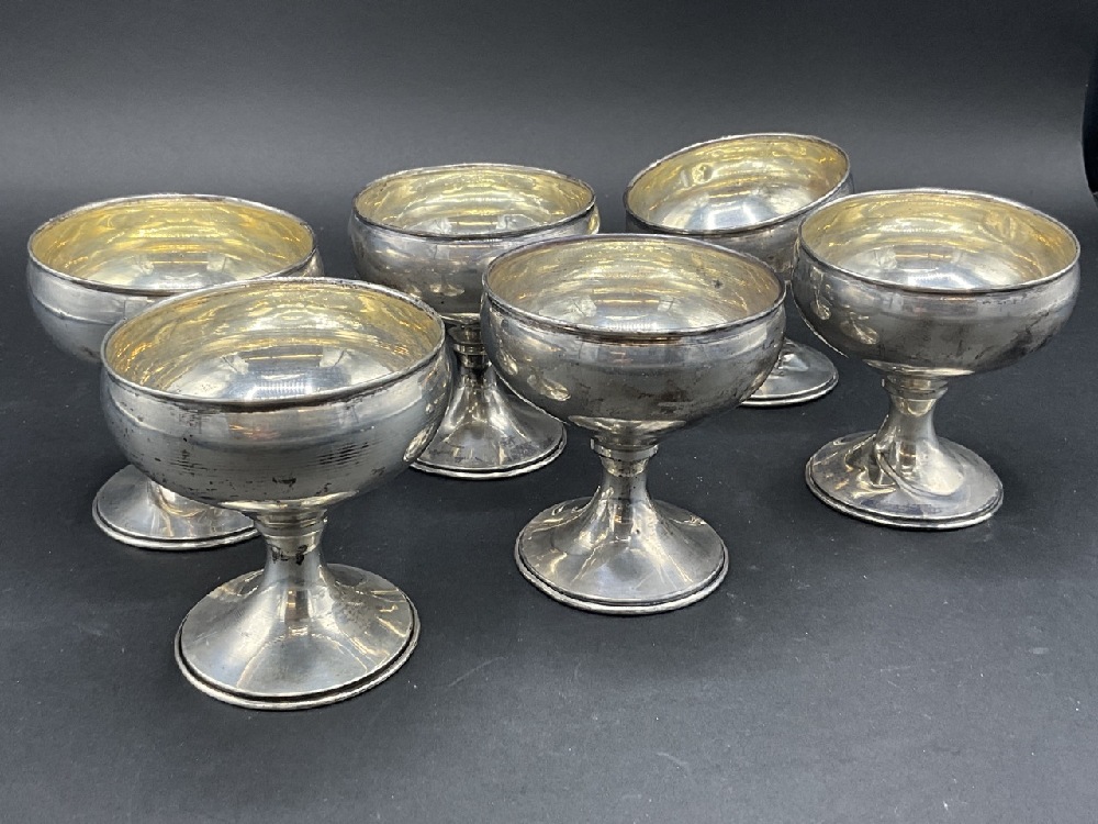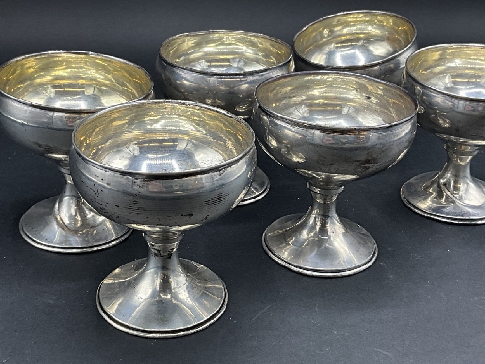 Six Sterling Silver Cups. For scrap or use. One is heavily dented and damaged.