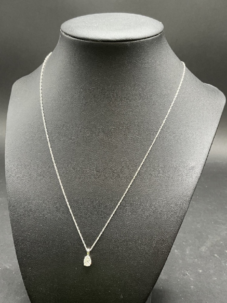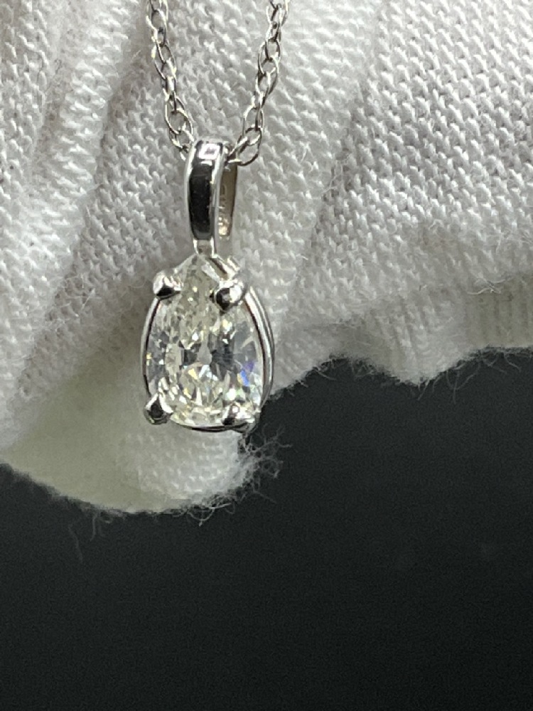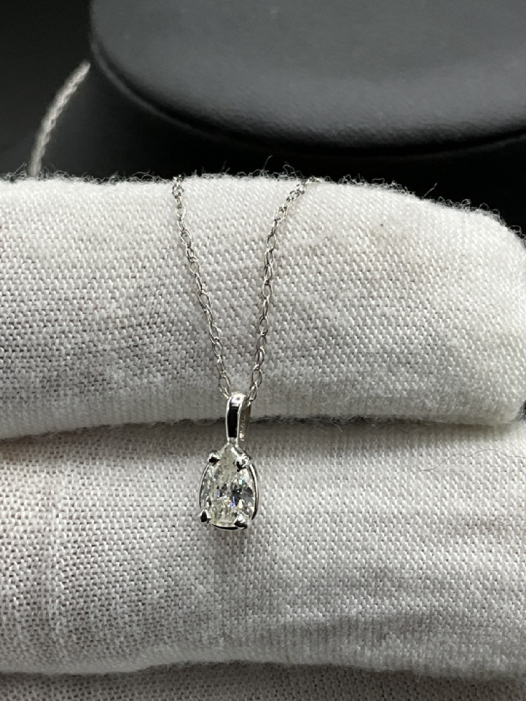 .41 ct. 14K White Gold Pear Shaped Diamond Solitaire Pendant Necklace Clarity SI2 and Color J-K with 17" chain.